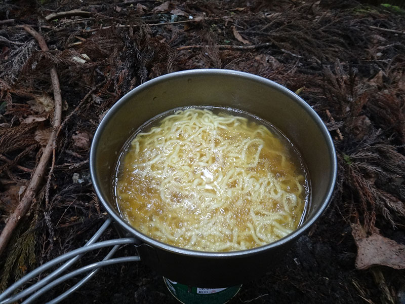 やめる決意をしてしまったので、もう帰る前提で、インスタントラーメンを作り始める。 ラーメン食べてお腹いっぱいになって下山。