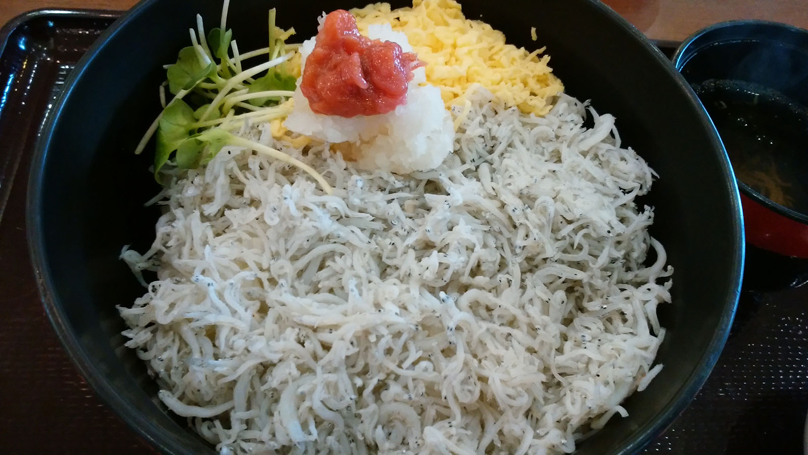 次は道の駅へ。 きちんとしたお昼ごはんを食べいなかったので。 「釜揚げしらす丼」を食べてお腹がいっぱい。