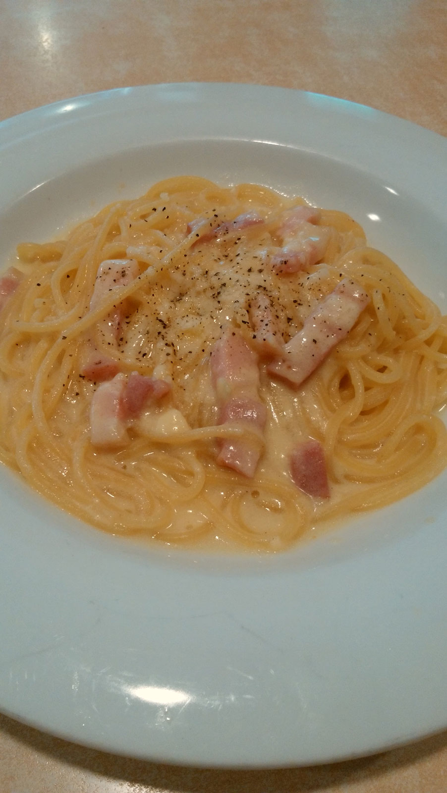 お昼はお弁当がなかったのでグラッチェへ。 カルボナーラを食べた後は、アッサムティー+妖怪ウォッチ3を楽しむ。