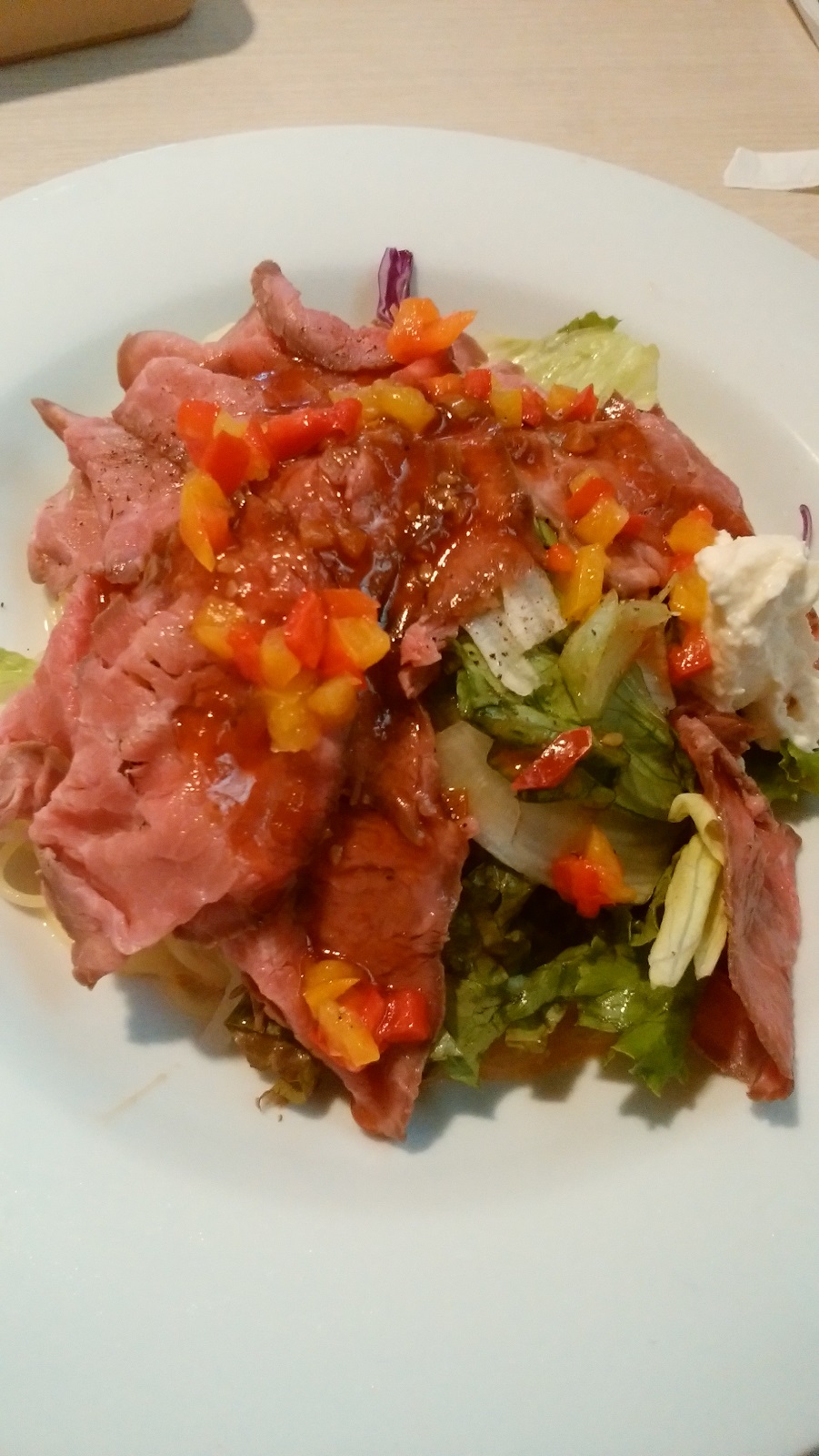 お昼はグラッチェへ。 「ローストビーフのパスタ」が先週くらいから新メニューとして登場したので、それを食べる。 冷製パスタで美味しかった。 食後はアッサムティーを飲みながら本を読んでくつろぐ。