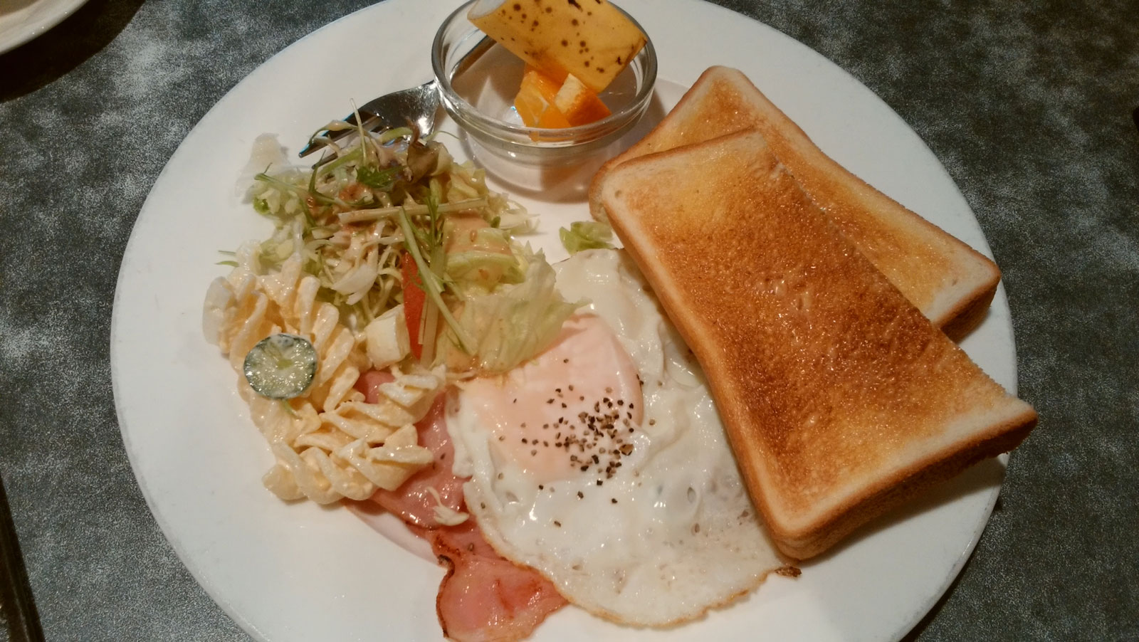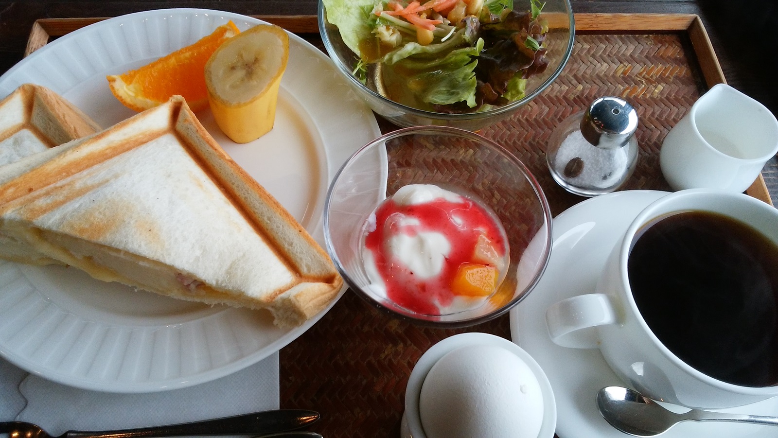 今日は水曜日なのでモーニングへ。 いつもの喫茶店で本を読みながらモーニングを食べる。 本がちょうどいいところで時間切れになってしまった。