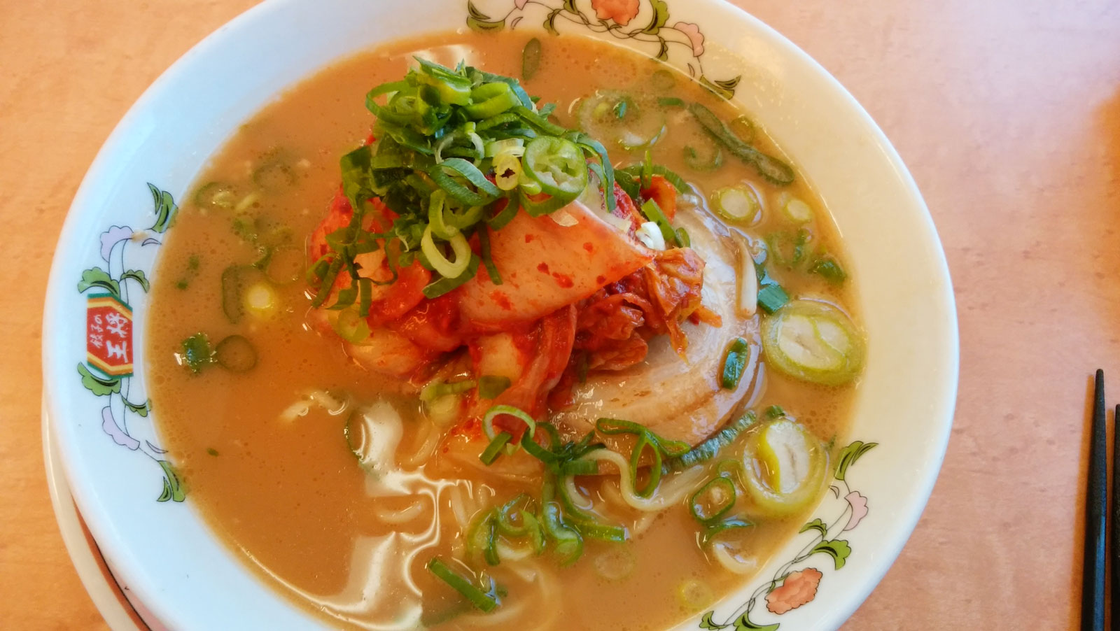 「キムチラーメン」を注文したが、けっこうキムチが辛かった。