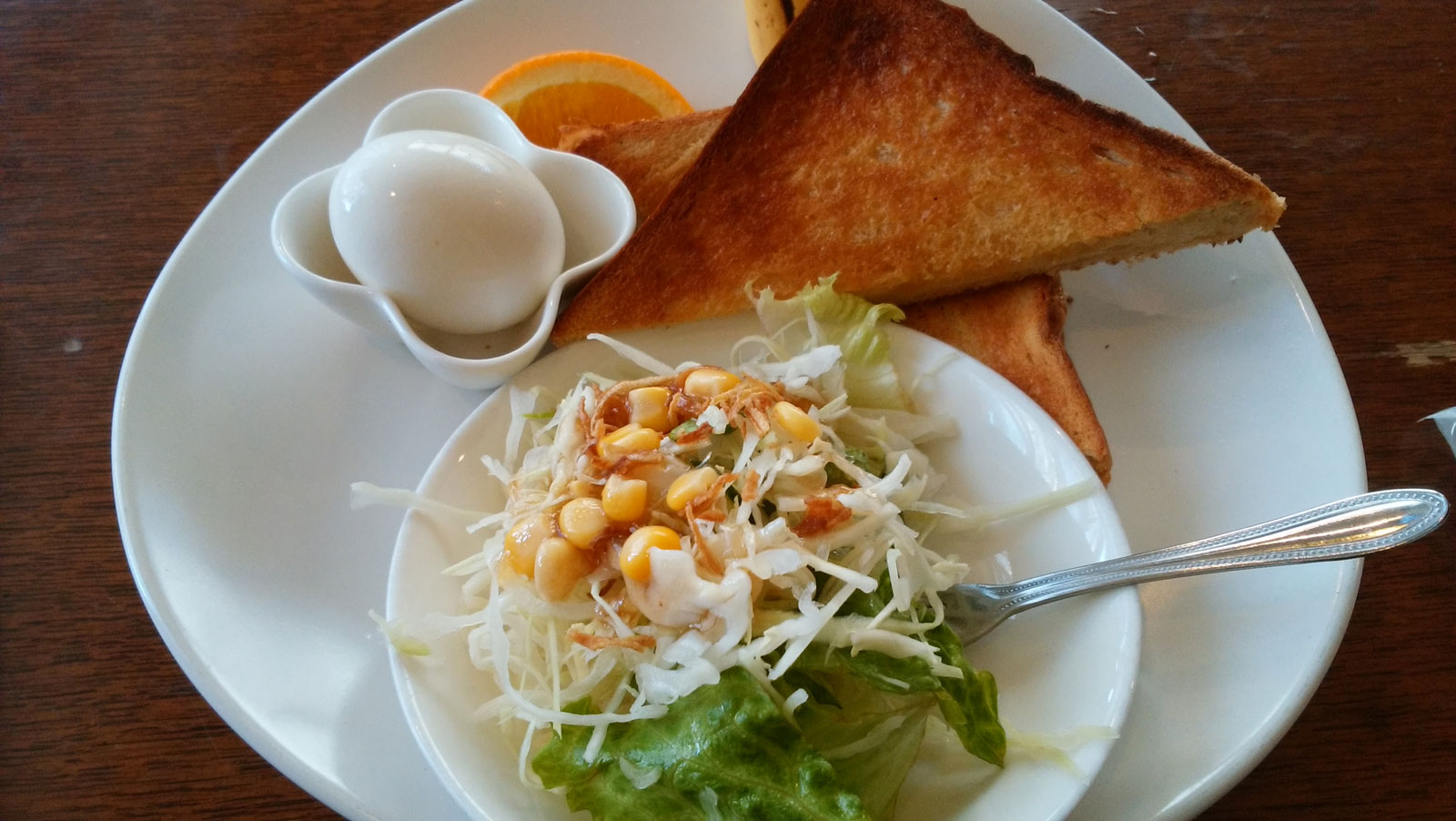 帰りに「コメダ珈琲」で朝ごはんを食べる。 ビッグサイズのドリンクに無料でつけられるトースト+ゆで卵のAセット。 普段食べているモーニングよりは100円位安いが無料でつけられるセットはしょぼかった……