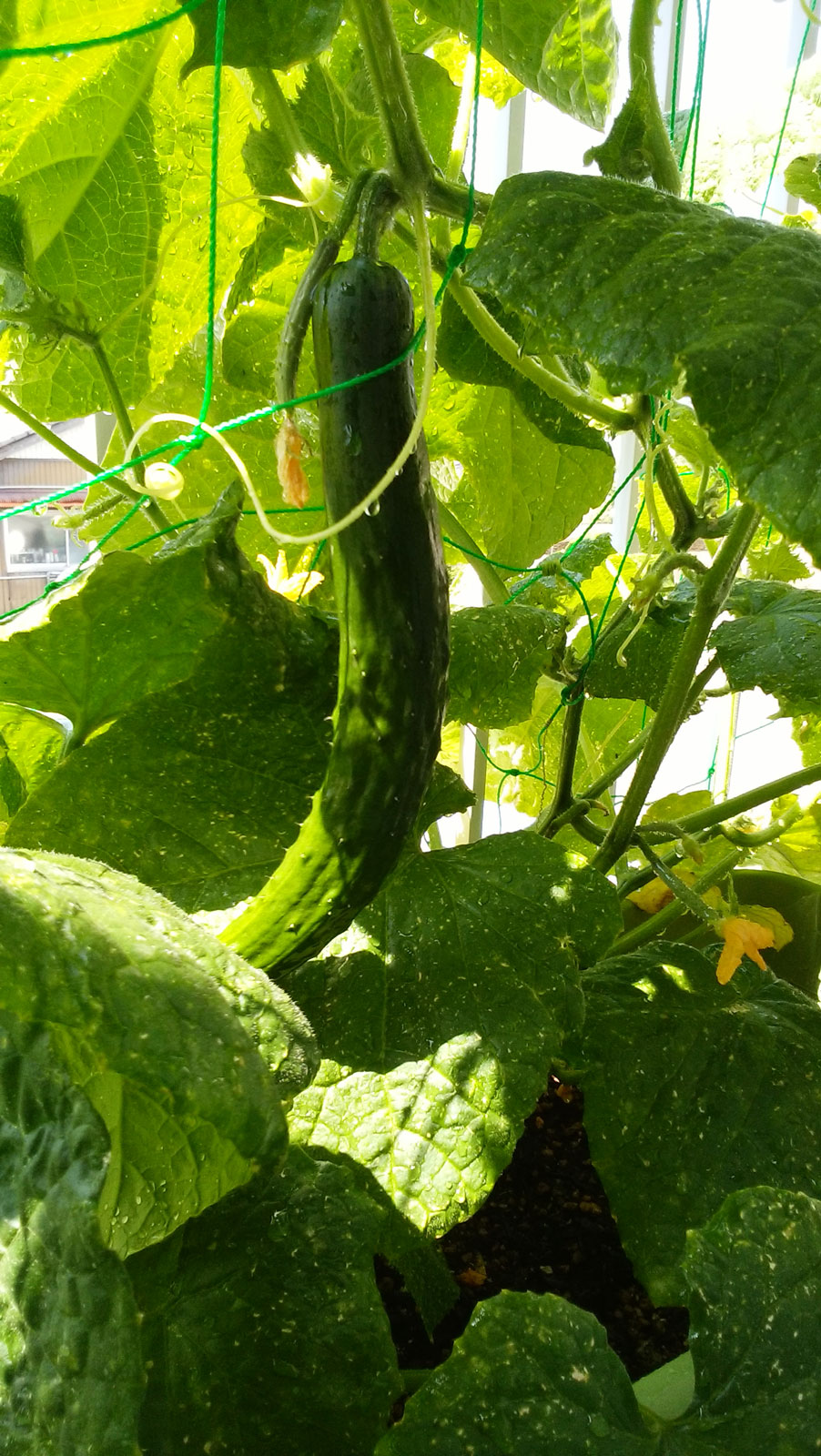 会社では1本目のキュウリが収穫できた。 昨日から一気に1.5倍くらいの大きさになっていた。 自分で作ったキュウリは美味しいのかなぁ。