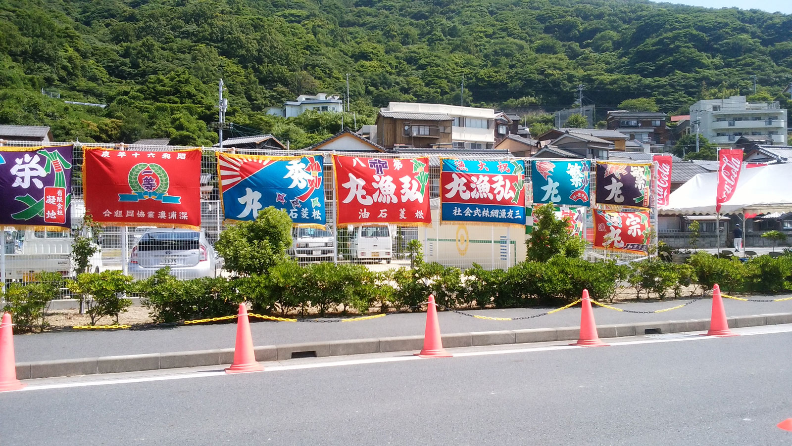 待っている間に、出店でカワハギのフライを購入。 唐揚げも1つおまけしてくれた。