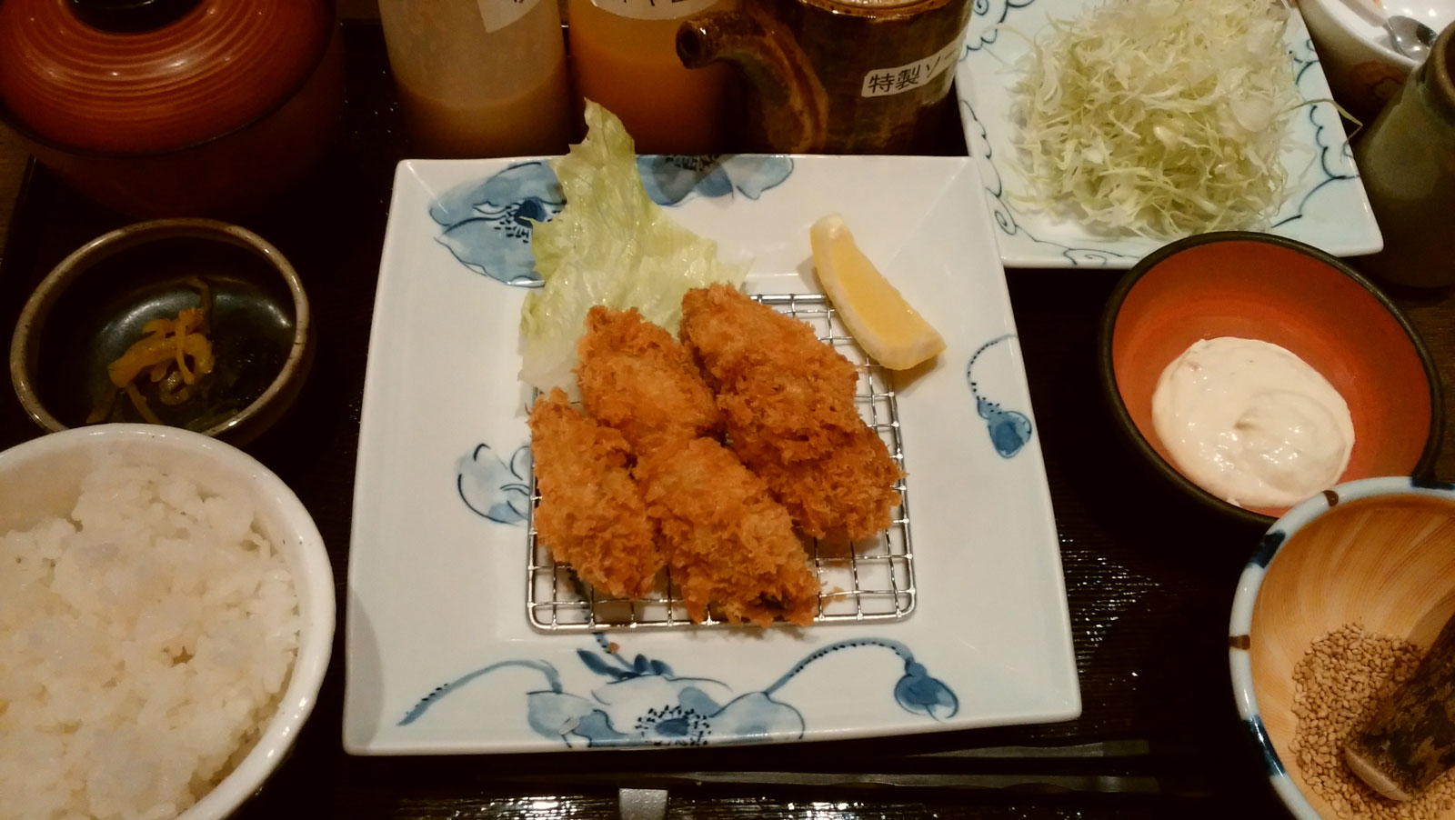 帰りはイオン綾川のとんかつ屋で夜ご飯を食べて買える。 前から、カキフライが食べたくて、このお店にカキフライがあったので、ようやく食べることができた。