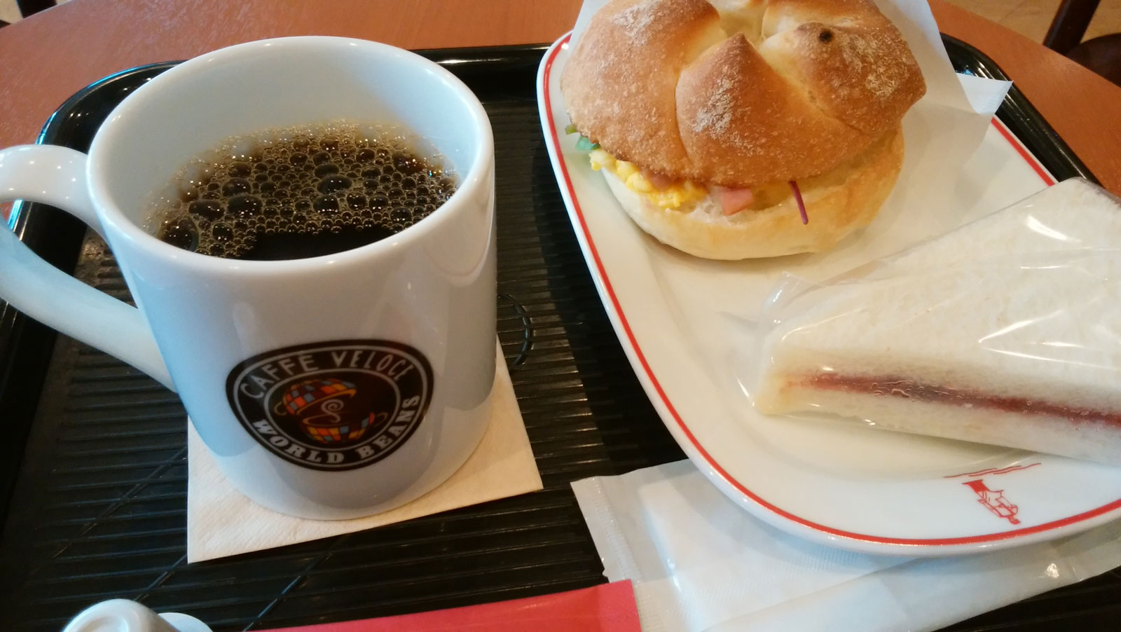 ドトール、スターバックス、モスバーガーなど、全国チェーン店のものしか見つからなかった。 仕方がないので、規模は大きいけど香川には進出してない「ベローチェ」でモーニング。