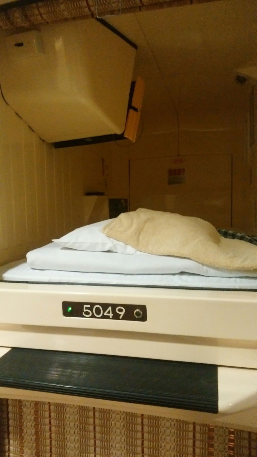 大浴場で汗を流してスッキリしてから、カプセルに潜り込んで寝る。 カプセルは密閉はされてないけど、垂れ幕を下ろすので外の空気があまり循環せず、少し暑いのが問題だったが、酔っているしすぐに寝ることができた。 もっと寝づらいと思ったけど、メチャメチャ快適だった。 昨晩の高速バスとは比べ物にならないくらい寝やすい。