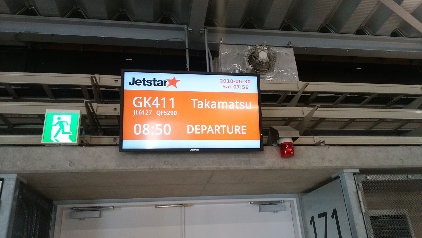 だけど、朝ごはんを食べる気分でもないし、食べたいような店もないので、イスに座って時間を潰す。 搭乗時刻になって、飛行機に乗り込んで高松へ向かって出発する。