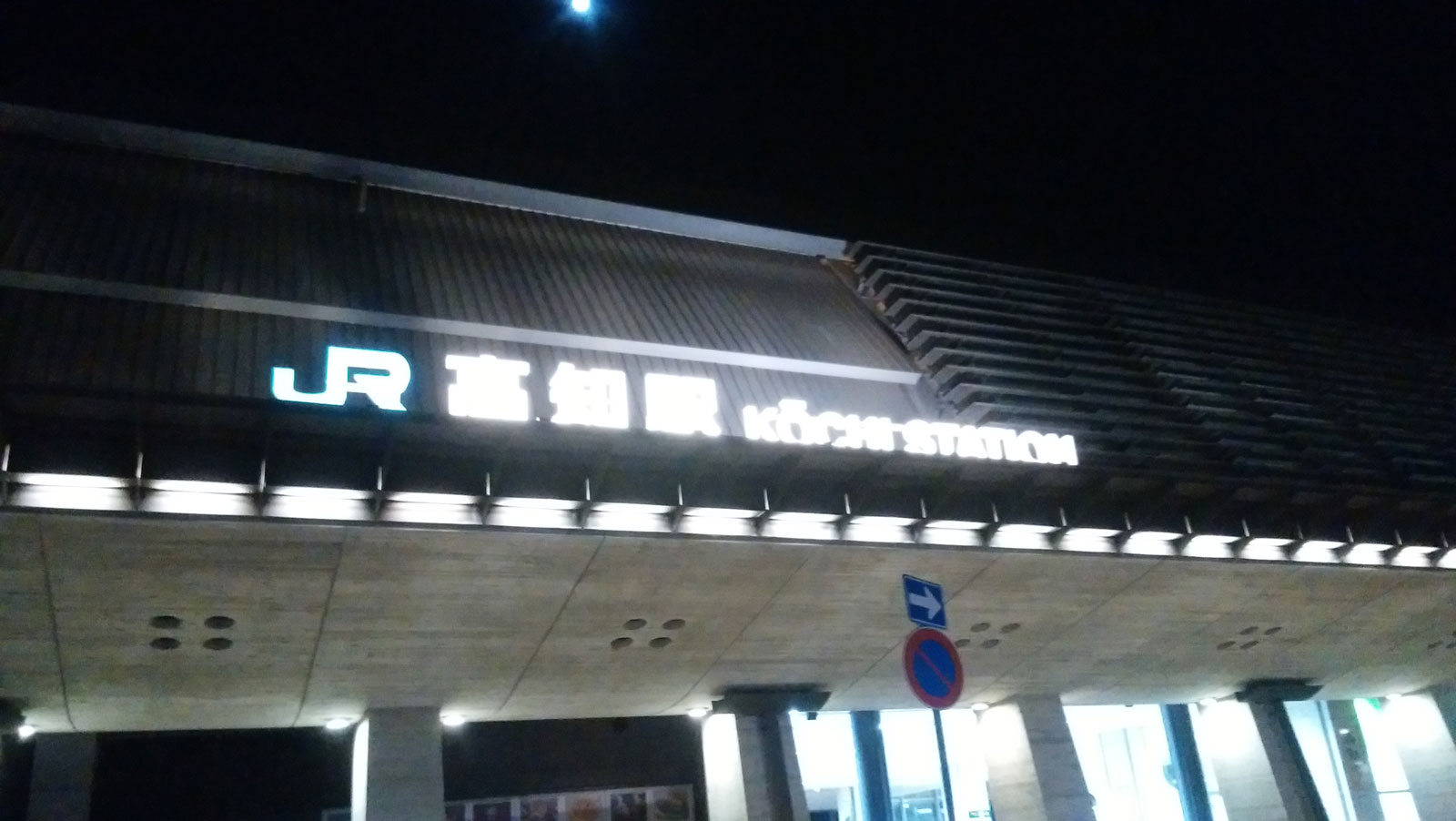 高知行きの高速バスは19時40分に岡山駅西口を出発する。 トイレ等を済ませて乗り込む。 高知までは2時間20分の予定。 ほとんどの区間を寝ていて、すぐに高知駅に到着したが、ずっと座っていると右膝が痛くなってくるので、適度に体を動かして誤魔化していた。 高速バスに乗る時は、一応シートベルトをするようにしている。 飛行機のシートベルトみたいに、腰に巻くだけなので、しててもしてなくても邪魔じゃないし。