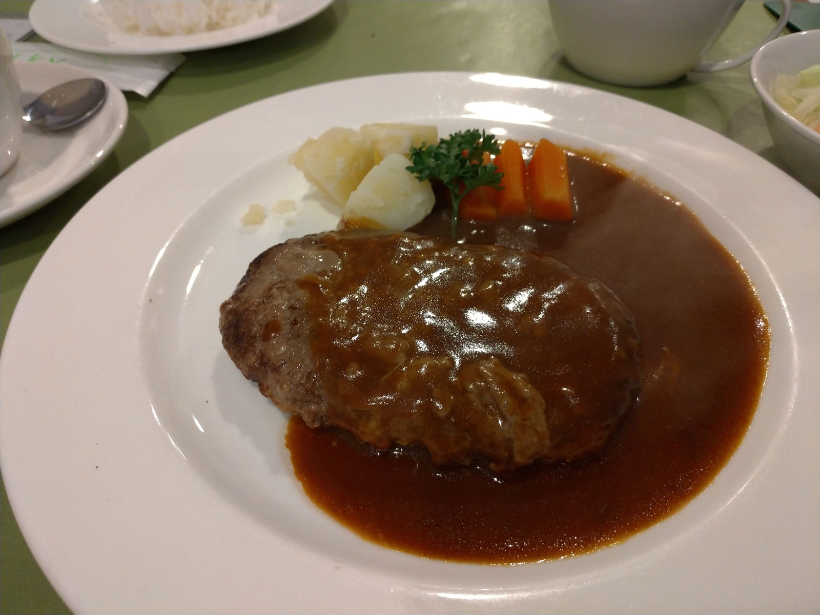 京成上野駅のすぐ裏にあった「レストランとうかい」という古い喫茶店でお昼ご飯を食べる。 ランチがあって、ハンバーグランチを食べた。 ハンバーグ+サラダ+スープ+ドリンクで970円。 さっき蕎麦を食べたばかりなので、あまりお腹が空いていなかったので、ご飯は半分くらいに量を減らしてもらった。 ハンバーグのソースがとても美味しかった。