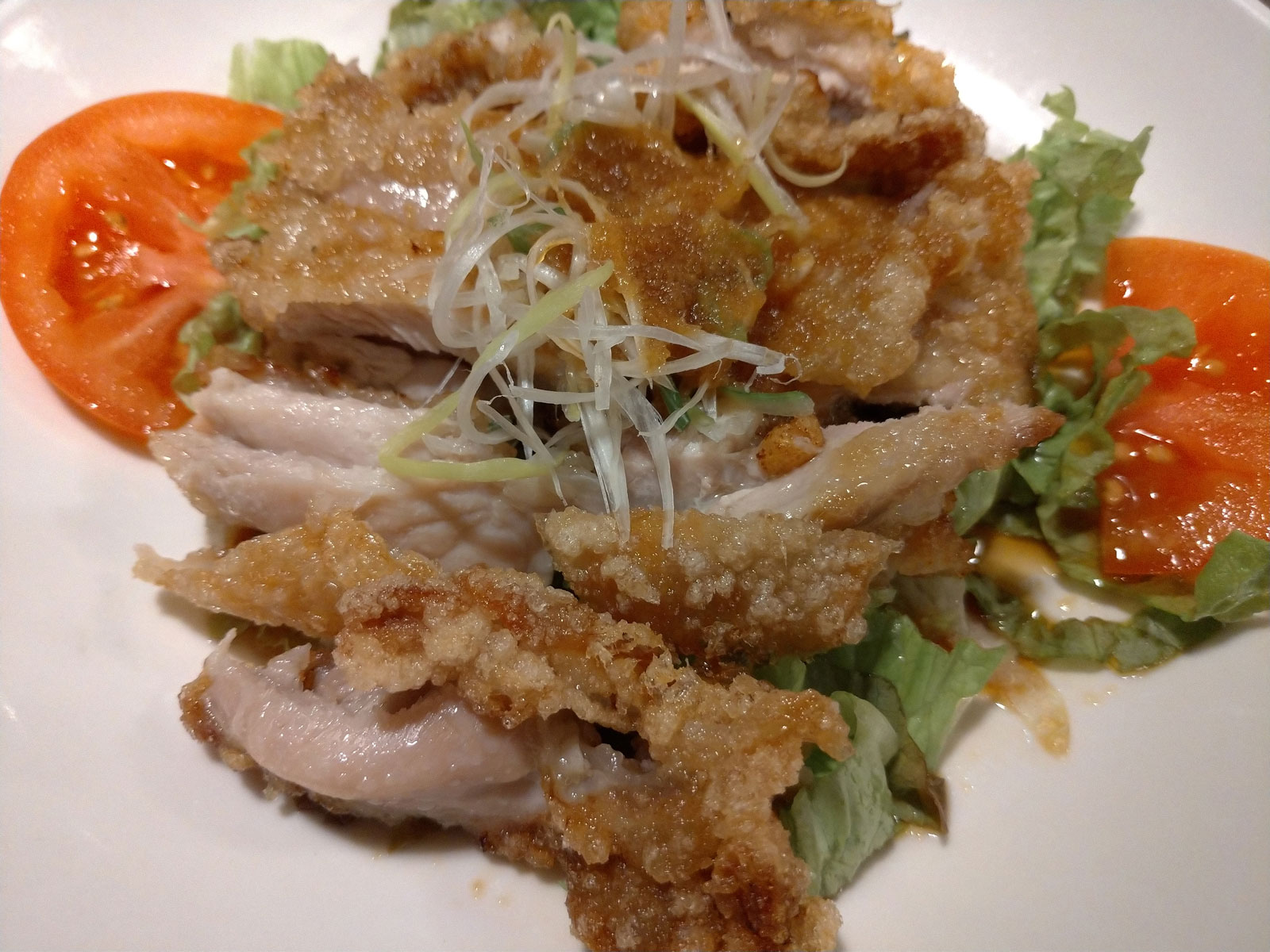 2種ソースで仕上げた大判油淋鶏、ご飯大、餃子、ドリンクバーと、普段食べる倍くらいの量を注文したのだけど、あまり早く食べすぎると、この量なので消化不良を起こし、お腹を壊す可能性が高いのでゆっくりとよく噛みながら食べて、お腹が痛くならないように……