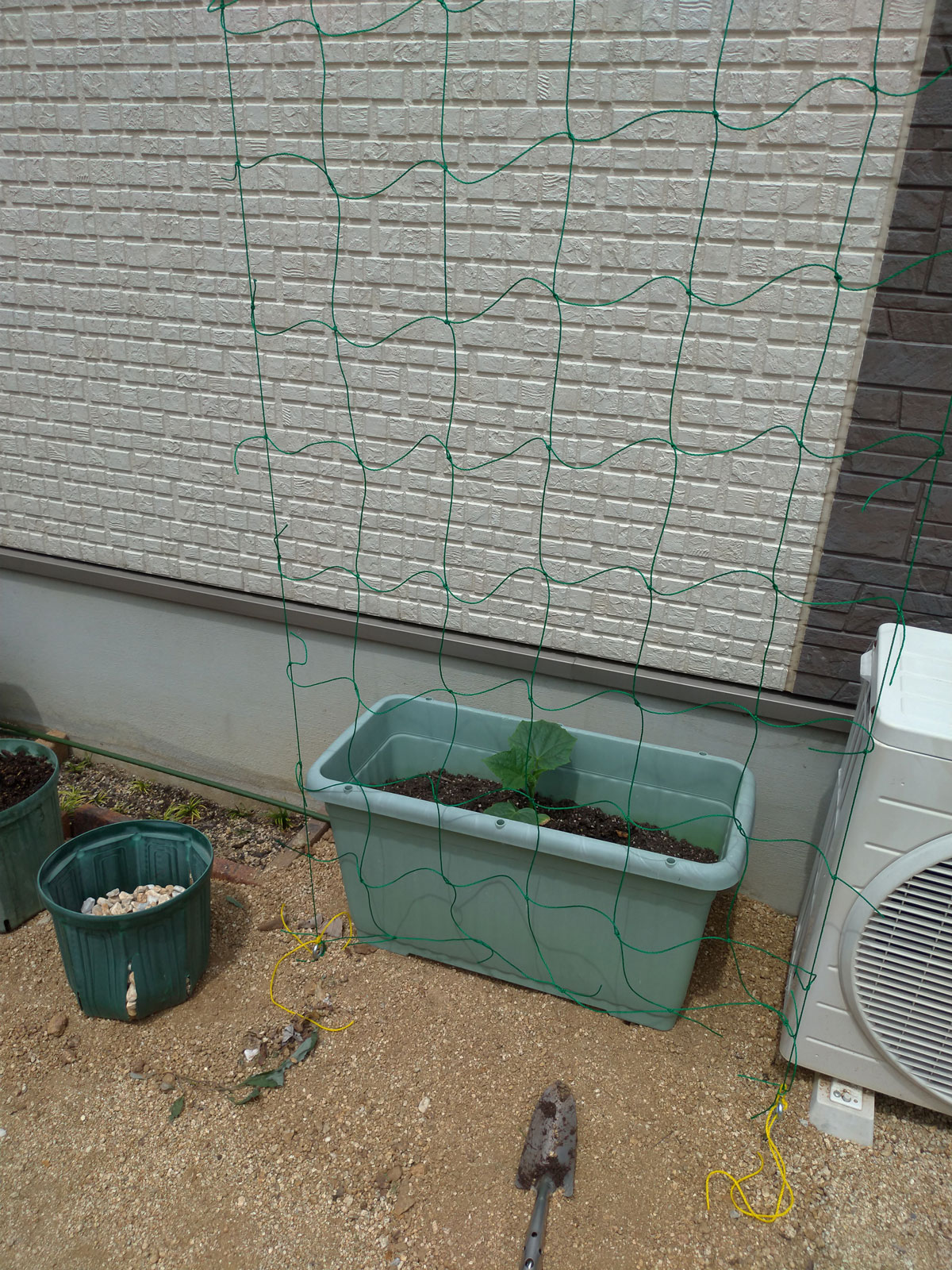 長男と三女と苗を植えて、キュウリのツルが上に伸びるためのネットも張って、あとは毎日の水やりをしてあげれば、グングンと育っていってくれるはず。