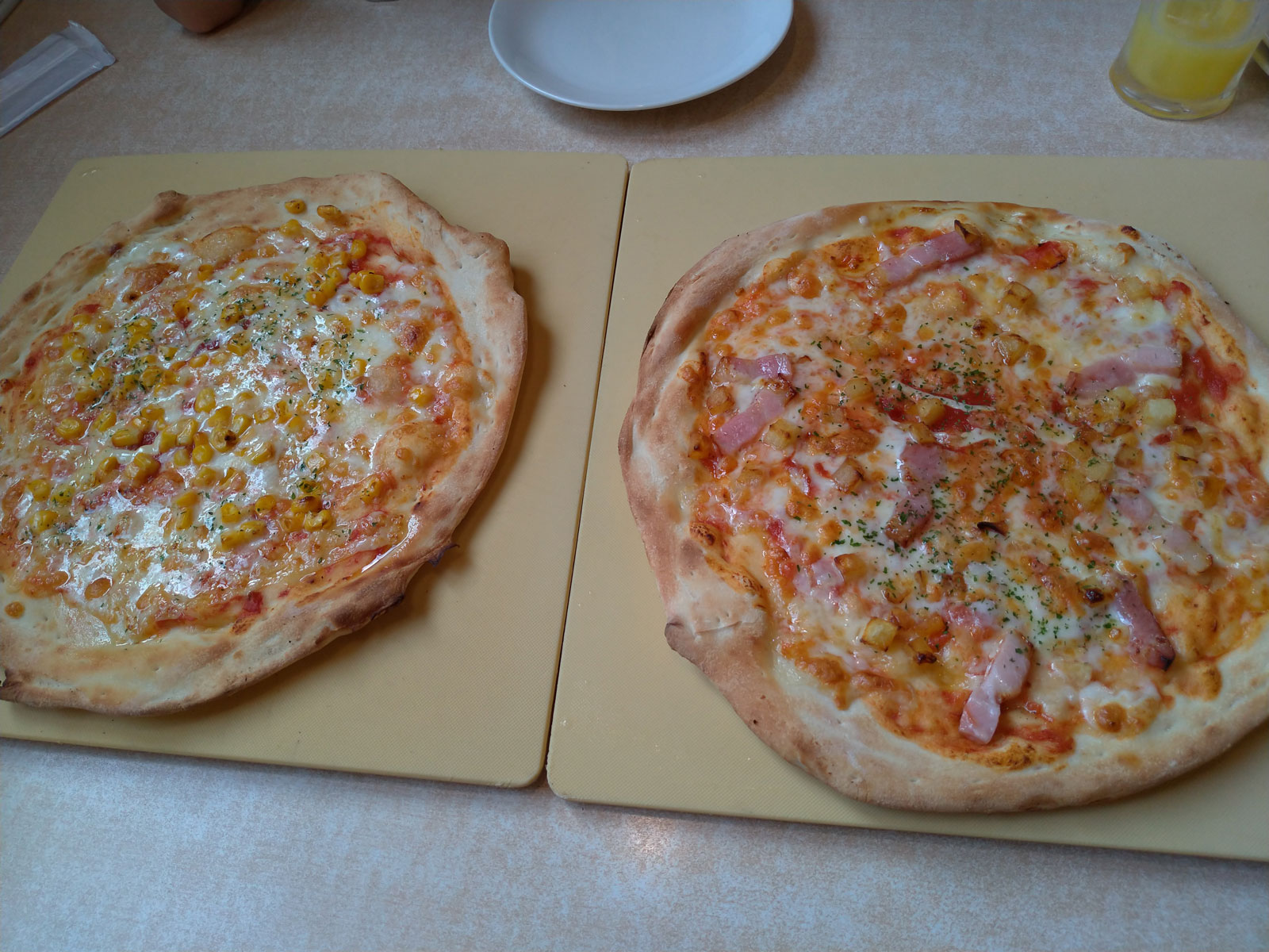 3人で2枚のピザを食べ、それぞれドリンクバーでジュースを飲んで満足してきた。