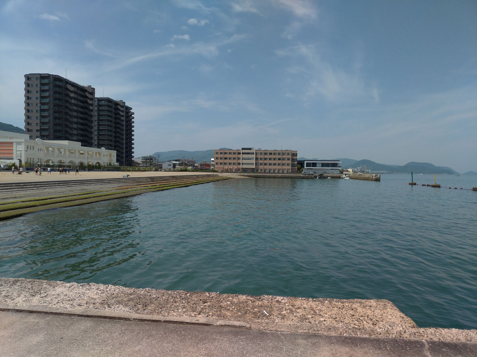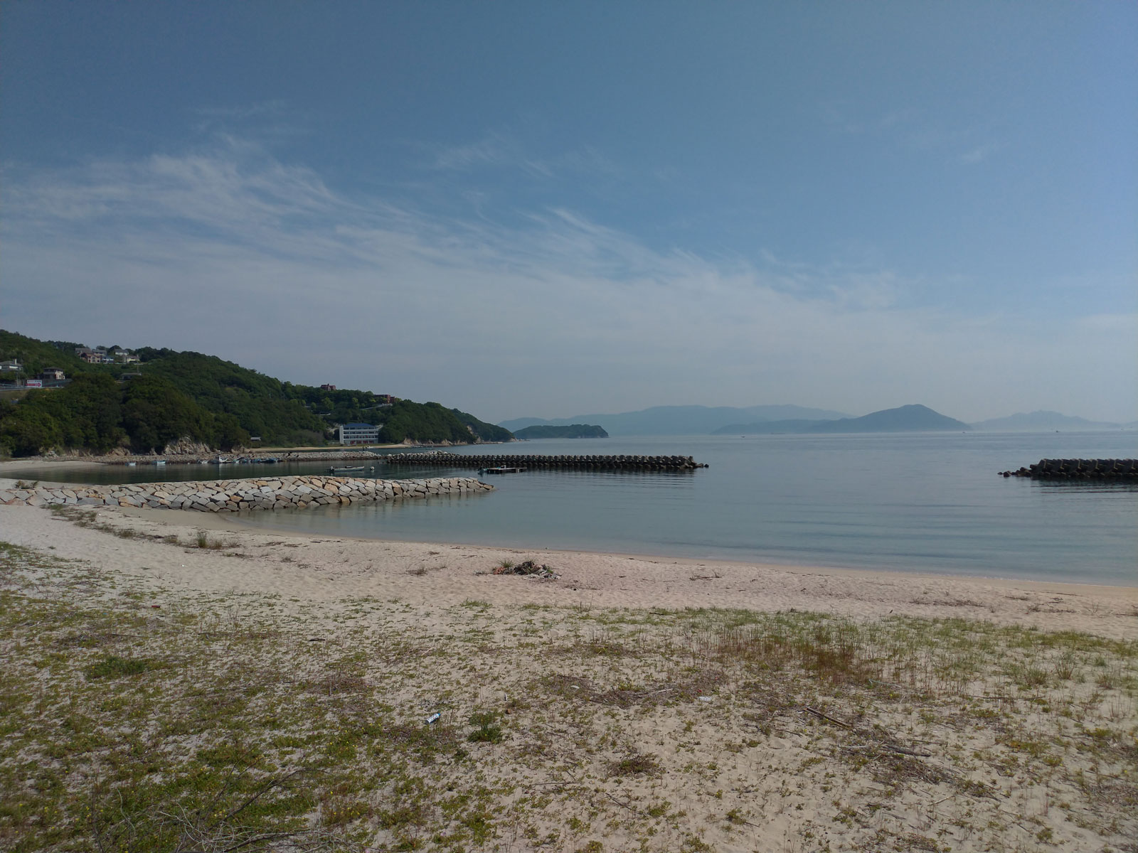 一瞬で皆が見えなくなって、一人で庵治の坂道と戦いながら走っていった。 ボロボロになった状態で高尻海岸に到着。