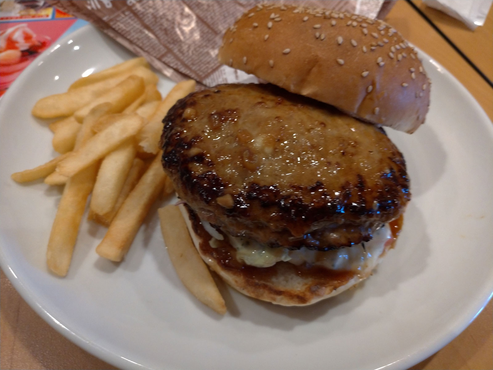 昼ごはんはガストへ。 久々にガストに行ったら「ガストバーガー」が復活していたので注文してしまった。 高松に来て2年目くらいで廃止されたメニューの復活。 だが、微妙にリニューアルされていて、ハンバーグは普通のからチーズ入りのテリヤキチキンへ。 レタスの量も少なめになっている感じだった。 で、値段は200円もアップしていた…… まぁ美味しかったのだけど、ハンバーグの中のチーズはいらないな……