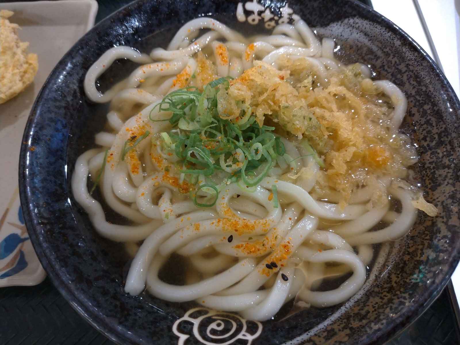 イオン綾川で待ち合わせなのでイオンへ。 まだお昼ごはんを食べてなかったので、フードコートで子供たちはラーメンを、自分ははなまるうどんでうどんを食べる。