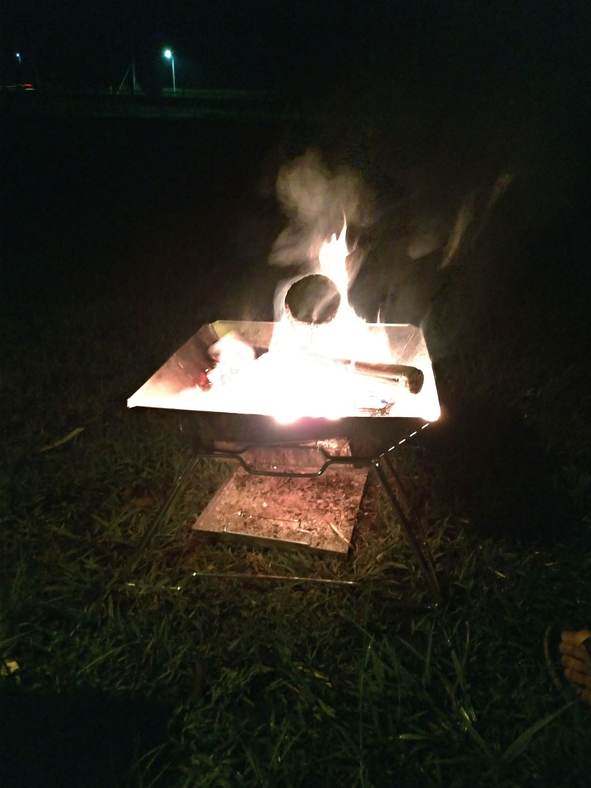 夜ご飯はバーベキューで肉を食べながらビールを飲みまくる。 飲みまくるといっても、500mlを4本しか買ってきてないが。 バーベキュー後は焚き火もした。