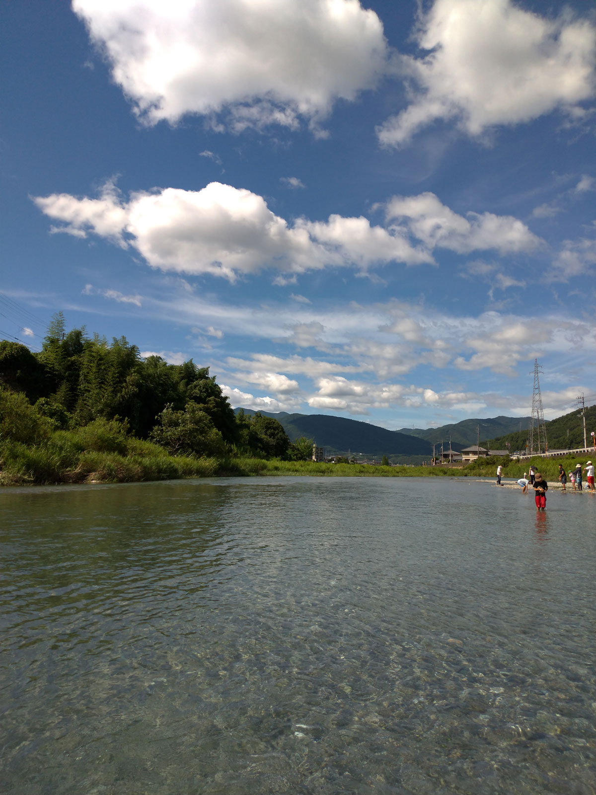 まだ14時なので時間的には余裕があるな、少し川遊びをしていこうかな。 吉野川から2kmくらいの地点で「一本松」という場所があって、そこで川遊びをしている人がたくさんいたので、ここで遊んでいくことに。