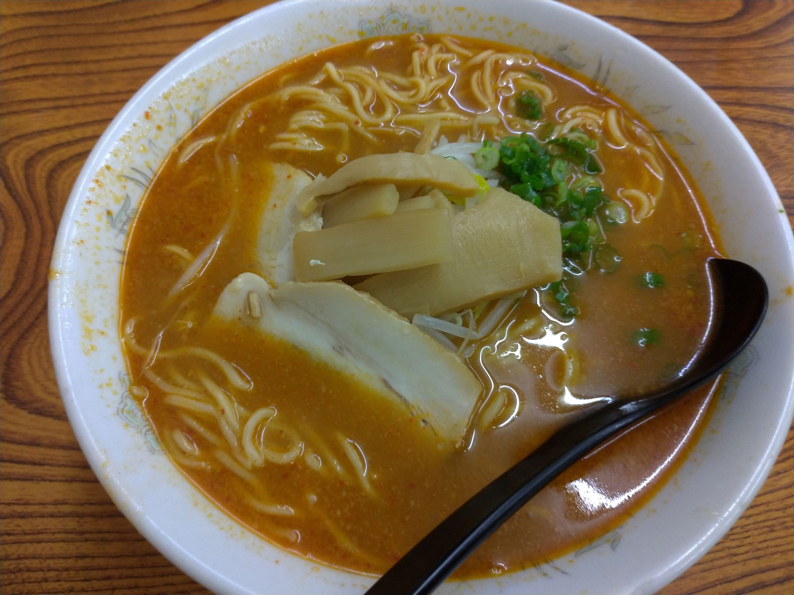 妻たちが友達の家に夕飯を食べに行ってしまったので、長男のスイミングを迎えに行って、長男と「夜仲そば」で激辛ラーメンを食べてきた。