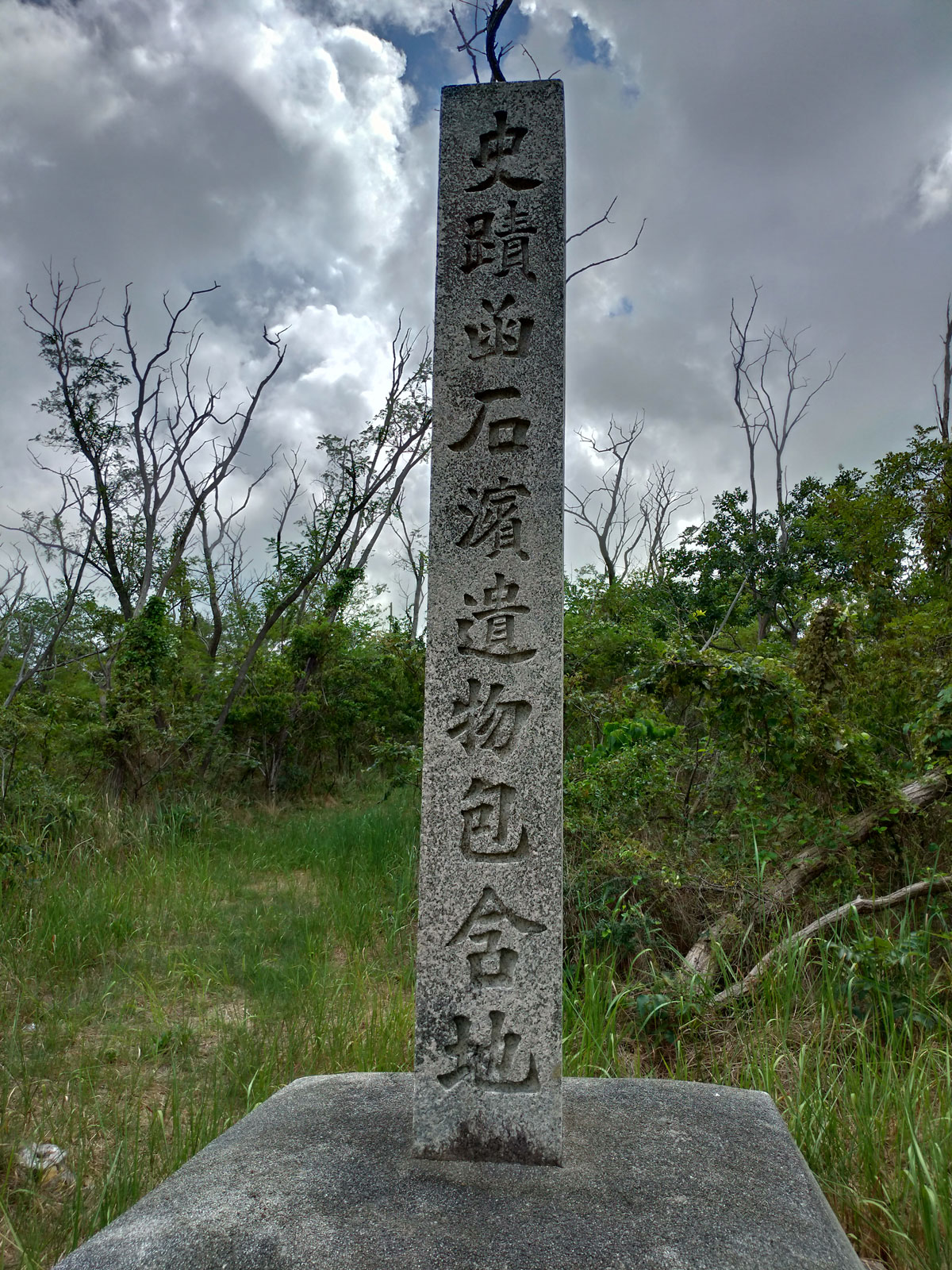 国指定「史跡函石浜遺物包含地」という名称らしく、縄文時代後期~室町時代に至る数多くの出土遺物が発見された地域らしい。 現在は草むらになっていて、そこに石碑が立つだけだった。