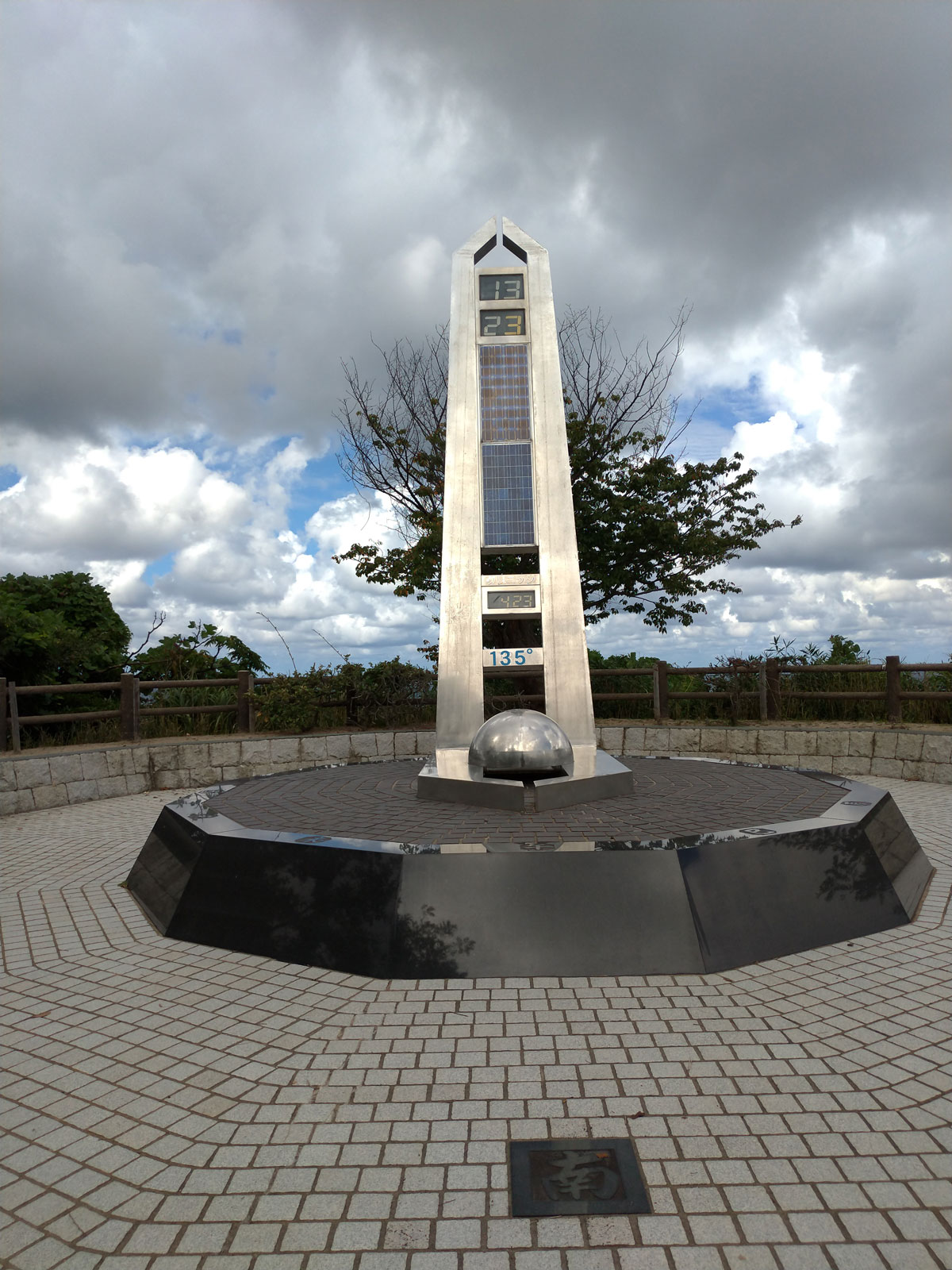 続いて19kmくらいかな。 「日本中央標準時 子午線最北の塔」というのがあったので見に行く。 日本標準時刻は東経135度、明石天文台が基準となっている。 そこから真北に進んでいき、本州最北端がここに鳴るので。 記念の塔が立っていた。