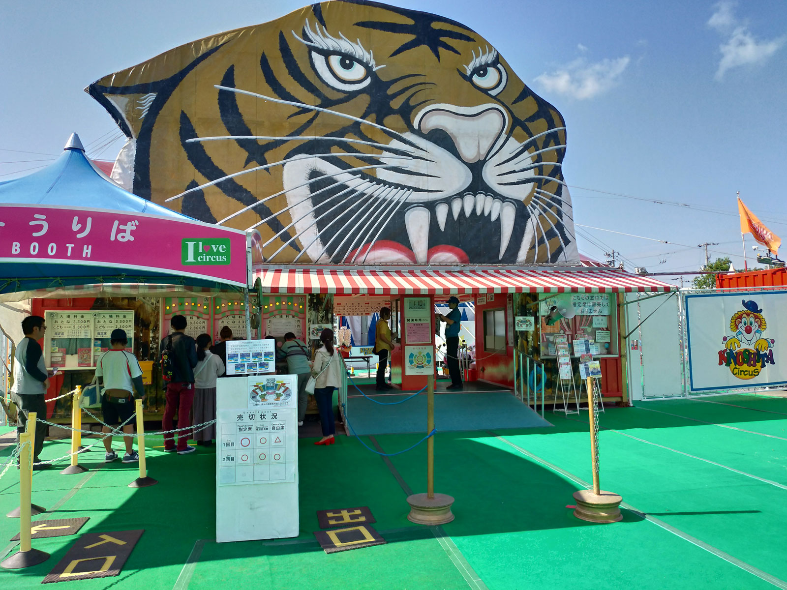 サーカスは13時40分開演となっていたので、20分くらい前に到着してウロウロしていたのだけど、自由席の待機列はすごい人数の行列が出来ていた。 自由席なので早い物順なので、1時間以上前から並んでいる人とかいそうだ。 指摘席列は先に入れるし、急がないでも席が決まっているので、ゾウと写真撮ったり、お菓子やジュースを買ったりと、悠々と時間を潰すことができた。