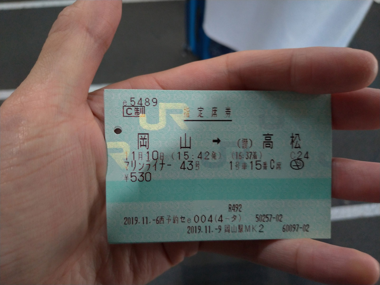 高松~岡山のマリンライナーは、指定席券を買ってしまった。 これからお土産とかを買いたいので、乗る時間がギリギリになりそう。 そうなると席に座ることができないかもしれないので。