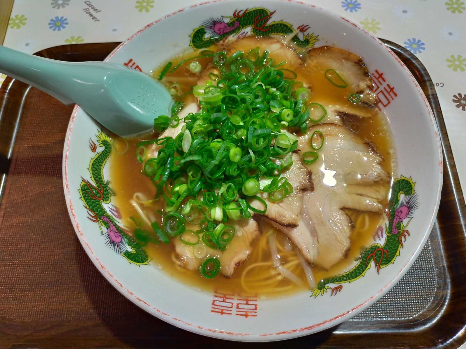 順調に運転して、13時50分くらいに山口県の下松SAに到着した。 本当はどこか普通の店で食事をしたかったが、もう14時になってしまうし、高速のSAで食事は仕方がない。 ここのSAのレストランはメチャメチャ高く、1,500円とか2,980円とか普通にするようなメニューが並んでいた…… なのでレストランには入れずフードコートで下松牛骨ラーメンを食べる。