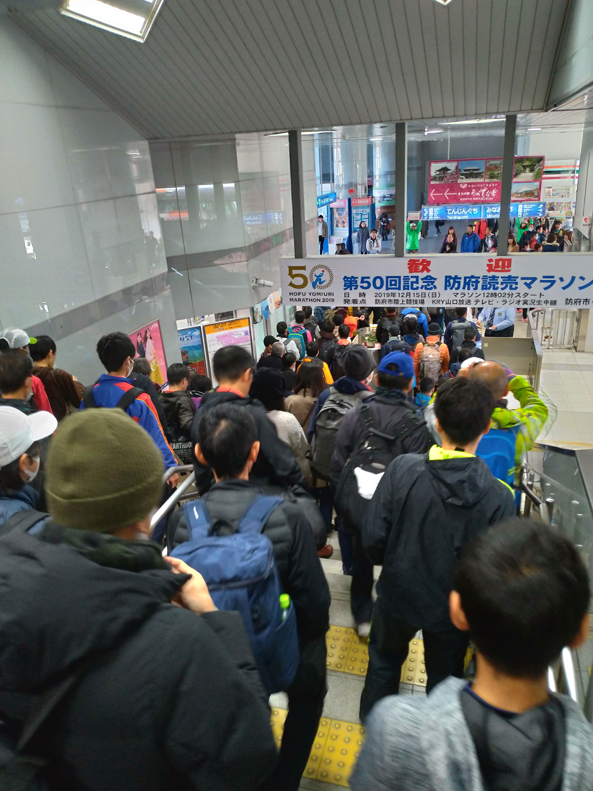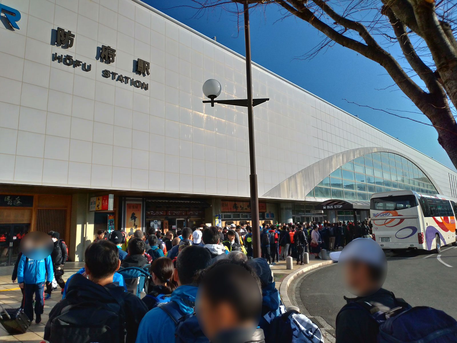 帰りのシャトルバスは、一瞬で眠りについて、すぐに防府駅に到着してしまった。 防府駅では駅員が温かいお茶のサービスをしてくれたりしていた。 切符売り場は長蛇の列だった。 ICカードが使えない駅だし、これは到着した時点で帰りの切符を買っておくべきだったな。