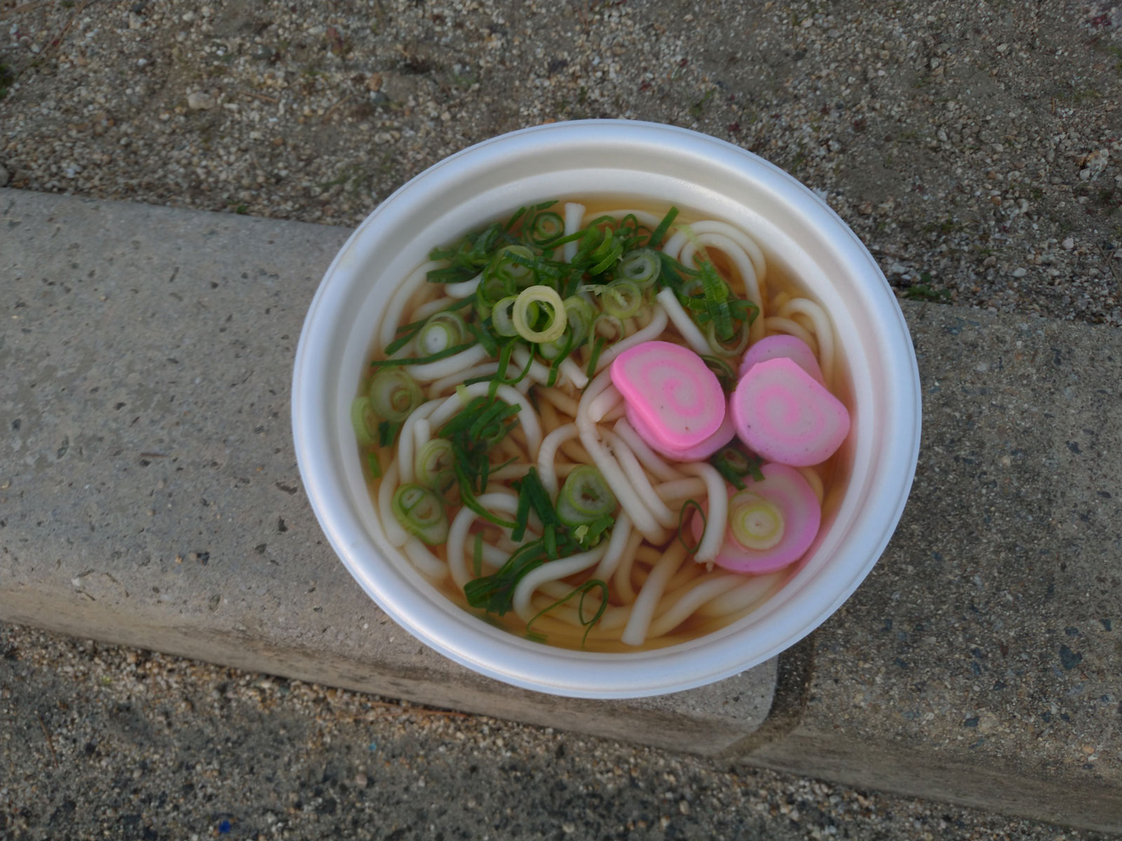 その後は、うどんの無料券を使ってうどんを食べたのだけど、肉うどんも鱧天うどんも具材が売り切れて、かけうどんになってしまった。 あと30名くらい早ければ鱧天うどんをゲット出来たのだけど、自分の後ろ30人くらいで、うどん自体が売り切れになってしまったので、ギリギリだったな。 うどんは細かったが温かくて美味しかった。