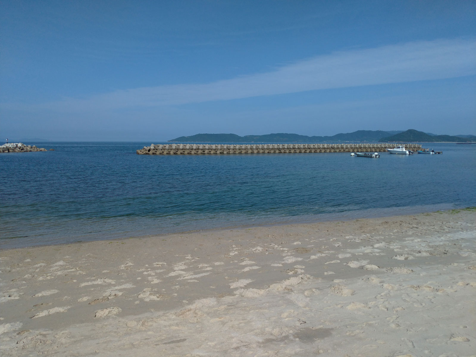 次は、庵治の高尻海岸で海遊びをしようとやってきた。 けっこう砂浜で遊んでいる人がいた。 まだ5月なので海は冷たいだろうなと思ったけど、予想通りかなり冷たかった。