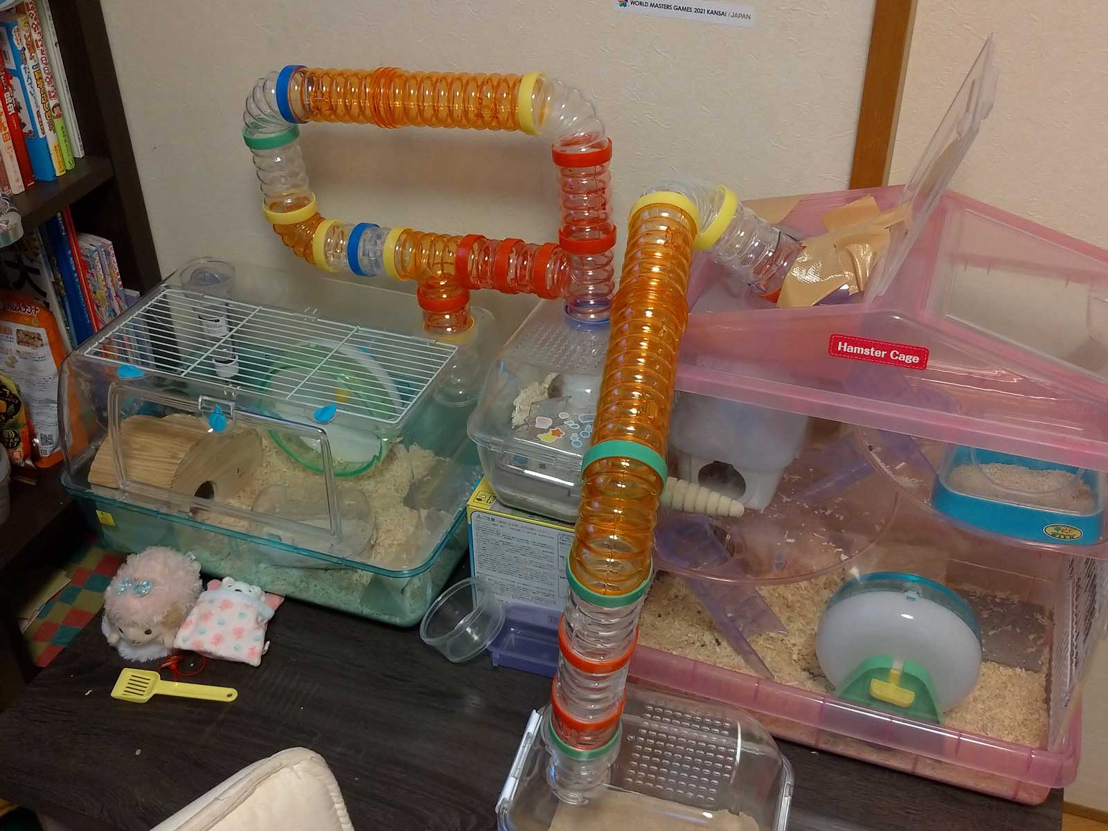 家に帰って、一応ソファの消毒をして部屋に設置。 ハムスターもパイプを繋げて、けっこう広くなったと思う。