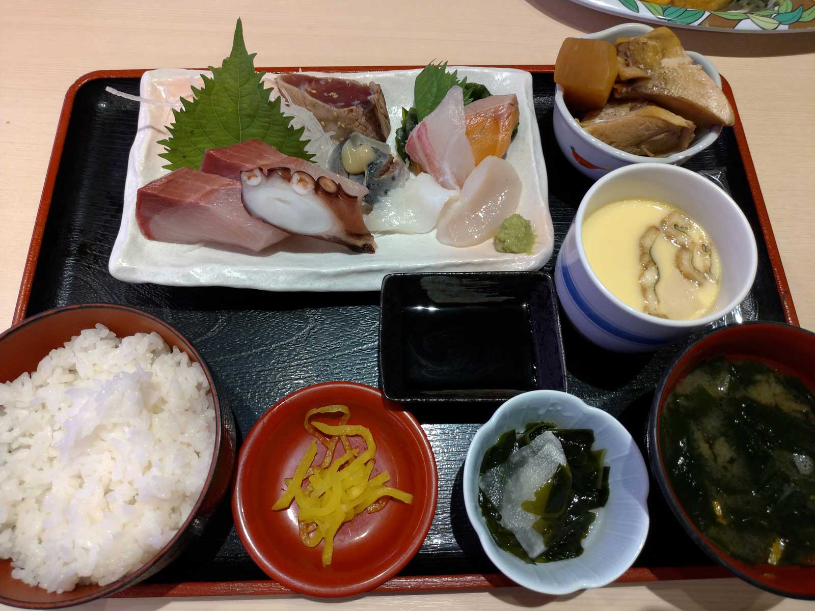 お昼ごはんは「ここも」で。 回転寿司屋だけど、刺身定食を食べた。 ハマチを厚切りにしたが、分厚すぎた… 寿司で食べると高いが、定食なら1,300円前後で食べられるので、寿司を食べるより満足感が高いかもしれない。