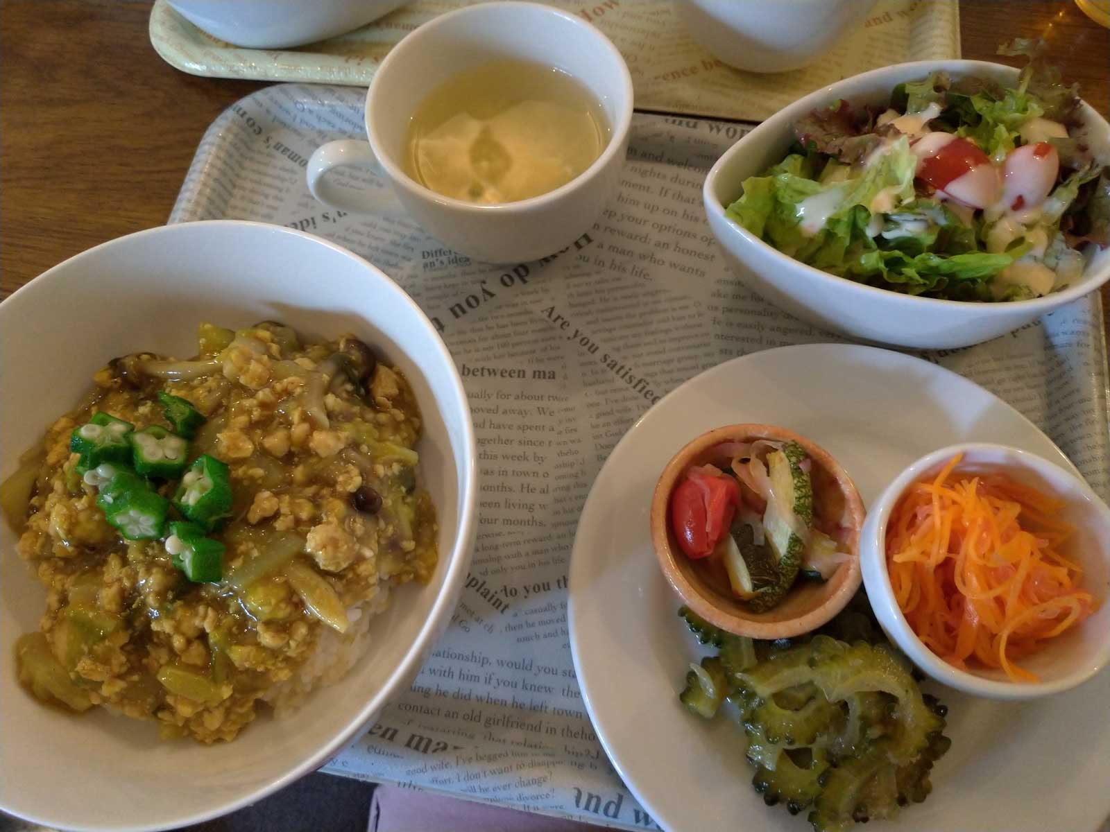 昼は「珈琲 矢の」に行く。 ここは三女の陸上の友達家族が営んでいるお店で、2週間前に場所を教えてもらったので訪問したのだ。 ランチは日替わりランチか、トーストランチか選べて、日替わりランチにした。 大人と同じ量なので、三女には多すぎたみたいだけど、美味しく食べることができた。