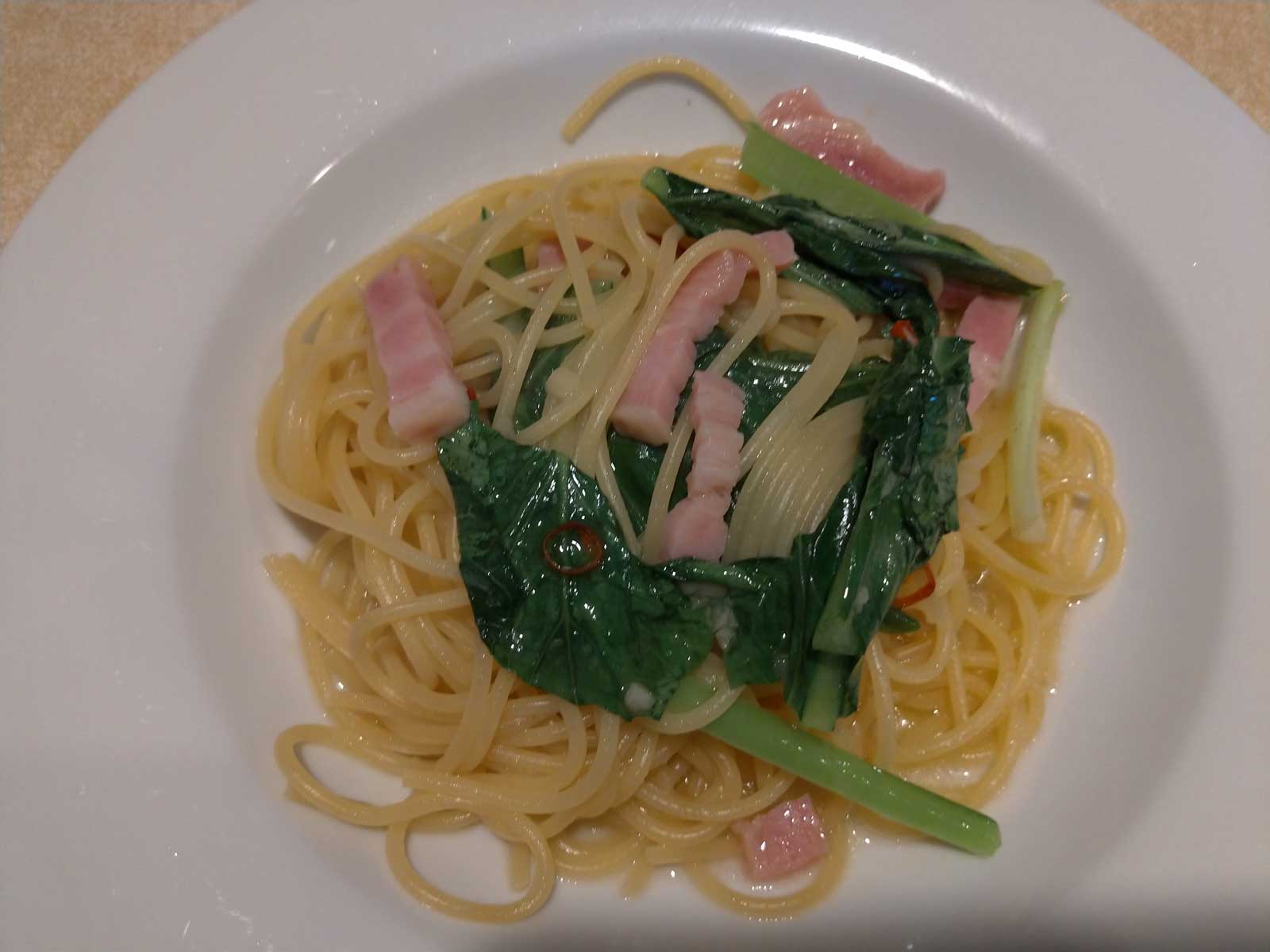 9時位に起床して、午前中は勉強に費やす。 お昼はグラッチェでいつも食べるペペロンチーノを食べた。