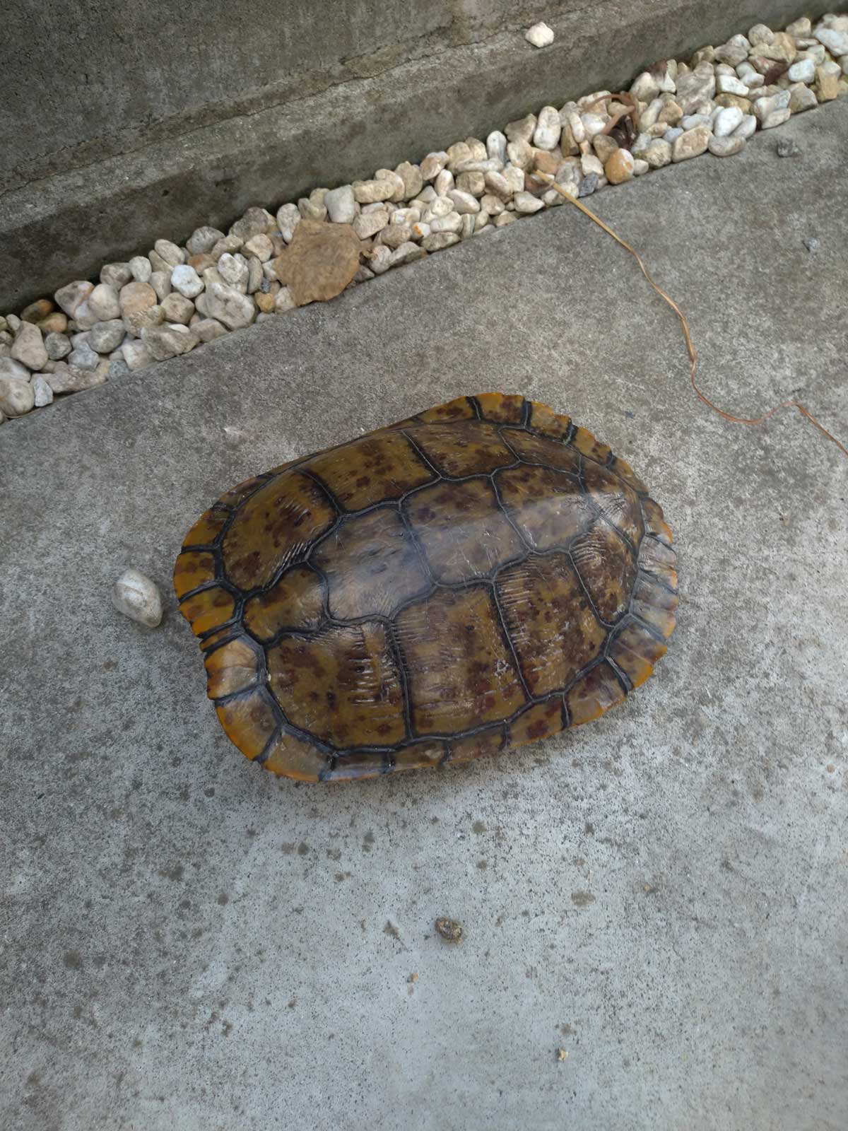 バケツにカメを入れて、池の中に投げたら、そのままスイスイと泳いで行った。 カメは水のあるところに戻れて幸せだろう。