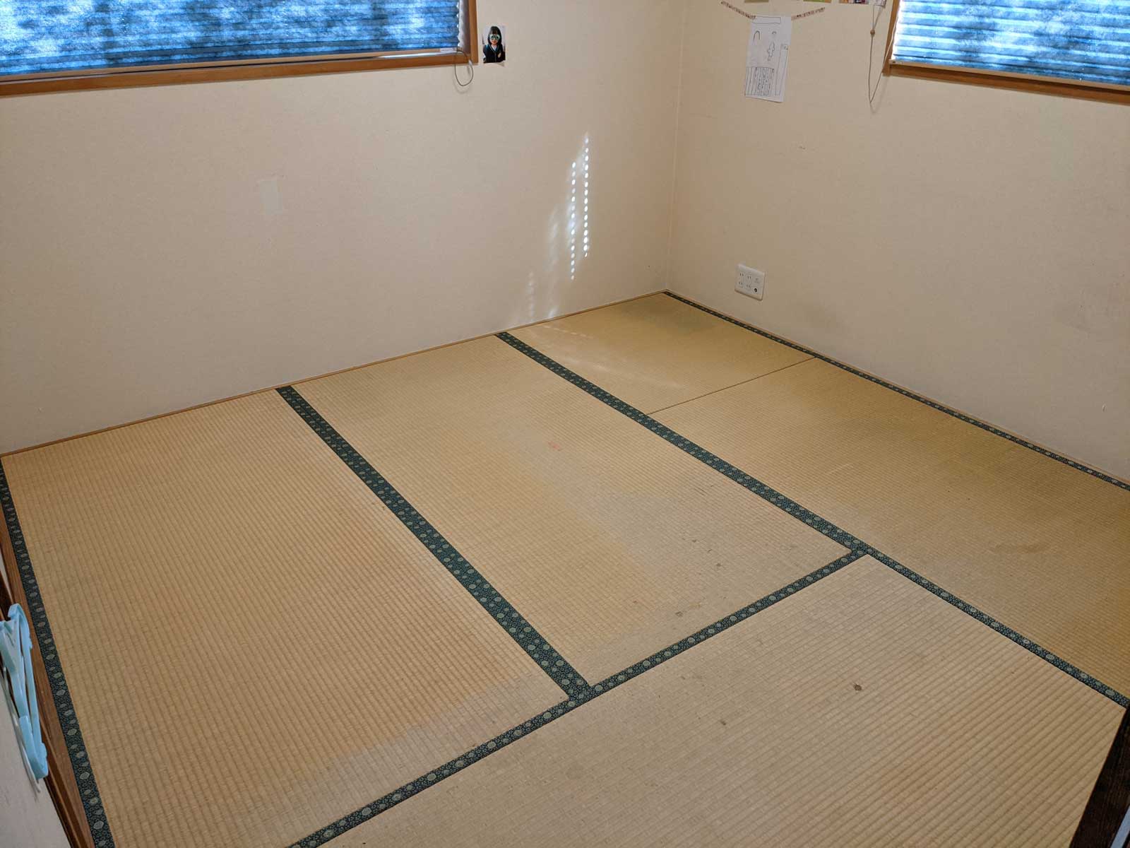 和室をリニューアルした。 和室なので畳の部屋なのだが、畳はボロボロで、三女が「カーペットを敷いてほしい」とずっと言っていた。 だが、入口付近に手前に引くタイプの押入れがあり、カーペットを敷くと厚みでその扉が開かなくなるので、どうしようかずっと考えていた。 けっきょく、オーダーカーペットを注文することにして、ドアが開くように切って加工してもらうことに。 前に、仕事用のアパート借りた時にもカーペットを注文した「カーテン道の駅201」で注文。