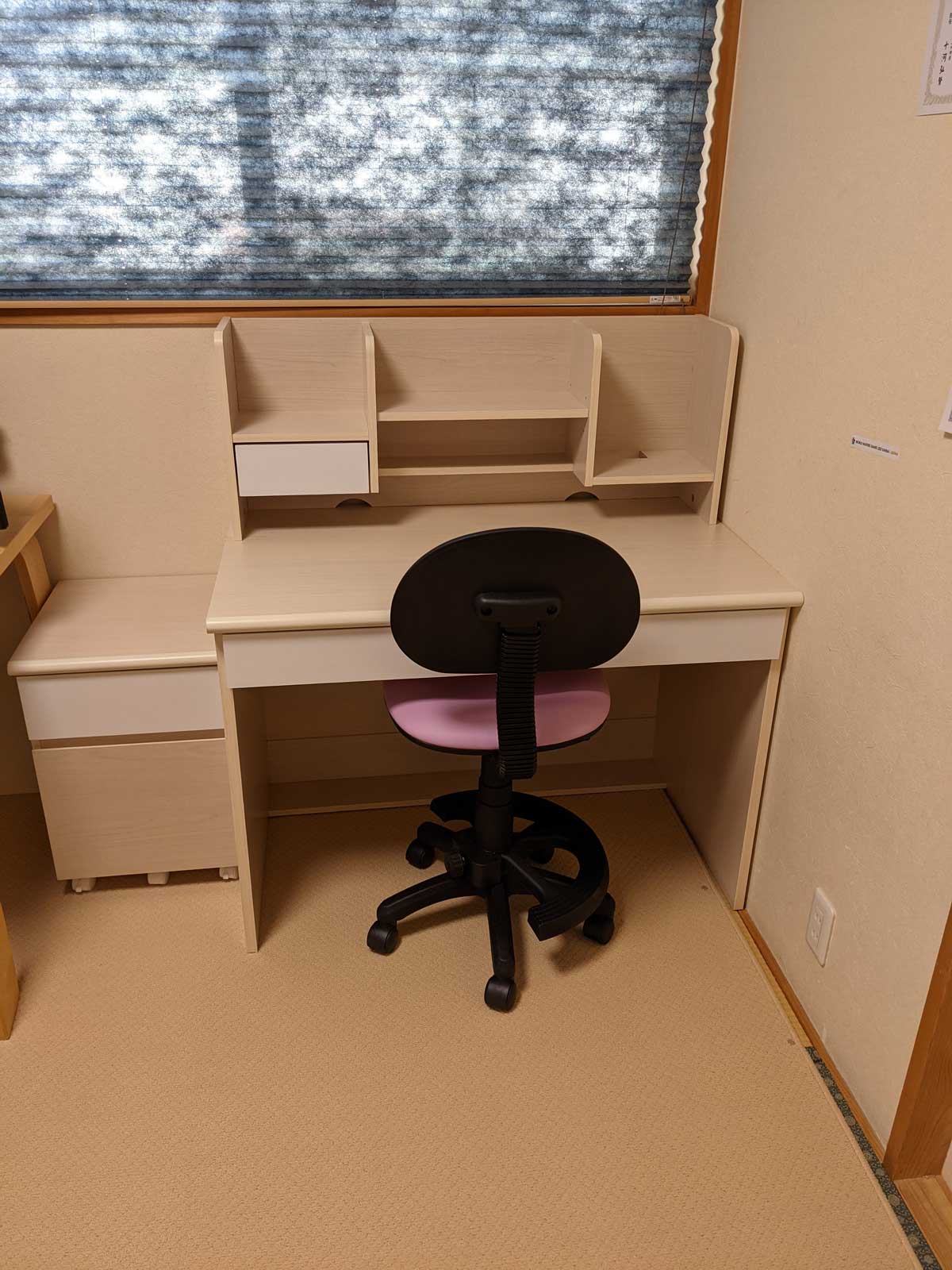 カーペット敷くのと同時に、三女の学習デスクを設置しようと思っていて、これも事前にAmazonで注文していた。 「学習机Look」というのを、Amazonで18,990円。 机だけでイスはついていないので、適当な安いイスを5,000円くらいで購入。