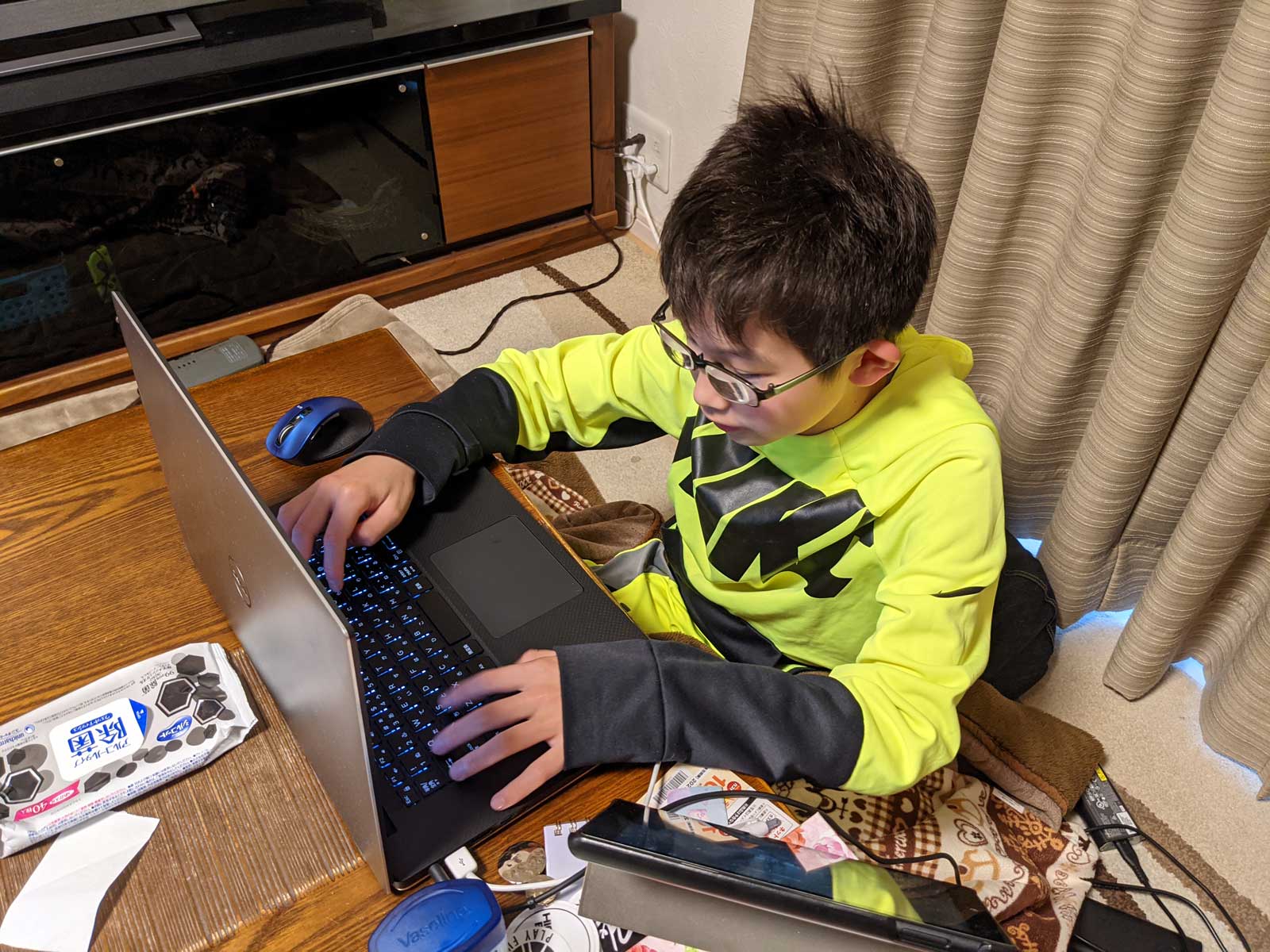 長男はパソコン自体は小学校で触ったり、自分のデスクトップでScratchで遊ばせたり、イータイピングでタイピング練習させたりしたことはあるが、自由にいつでも触れるものではないので、たまにしか触っていない。