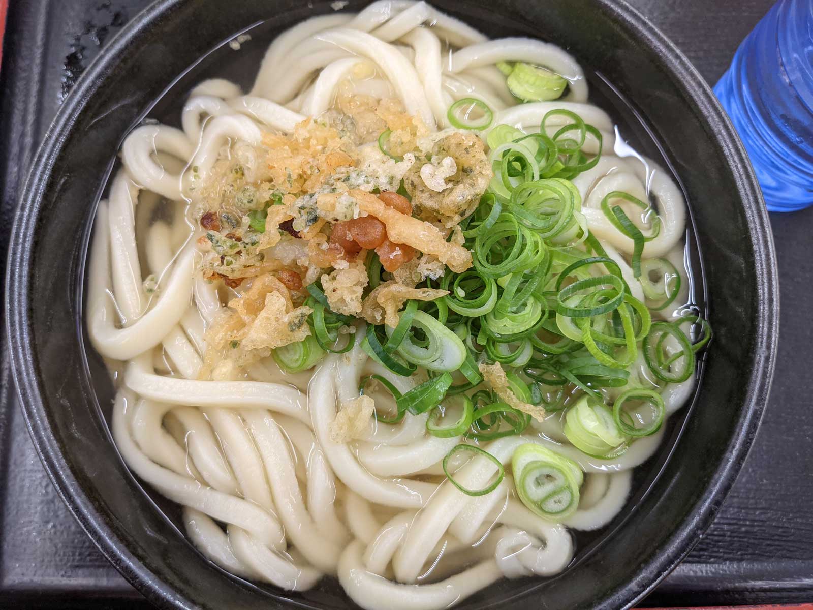 お昼はすぐ横にあるこがね製麺所で食べる。 午前中ずっと雨だったので、靴はびしょ濡れ。 一応雨の当たらない場所にはいたが、写真取るために屋根のない場所に行ったり、ポンチョは来てるけど、靴まではカバーできない。 熱い釜揚げうどんを食べて身体を温める。