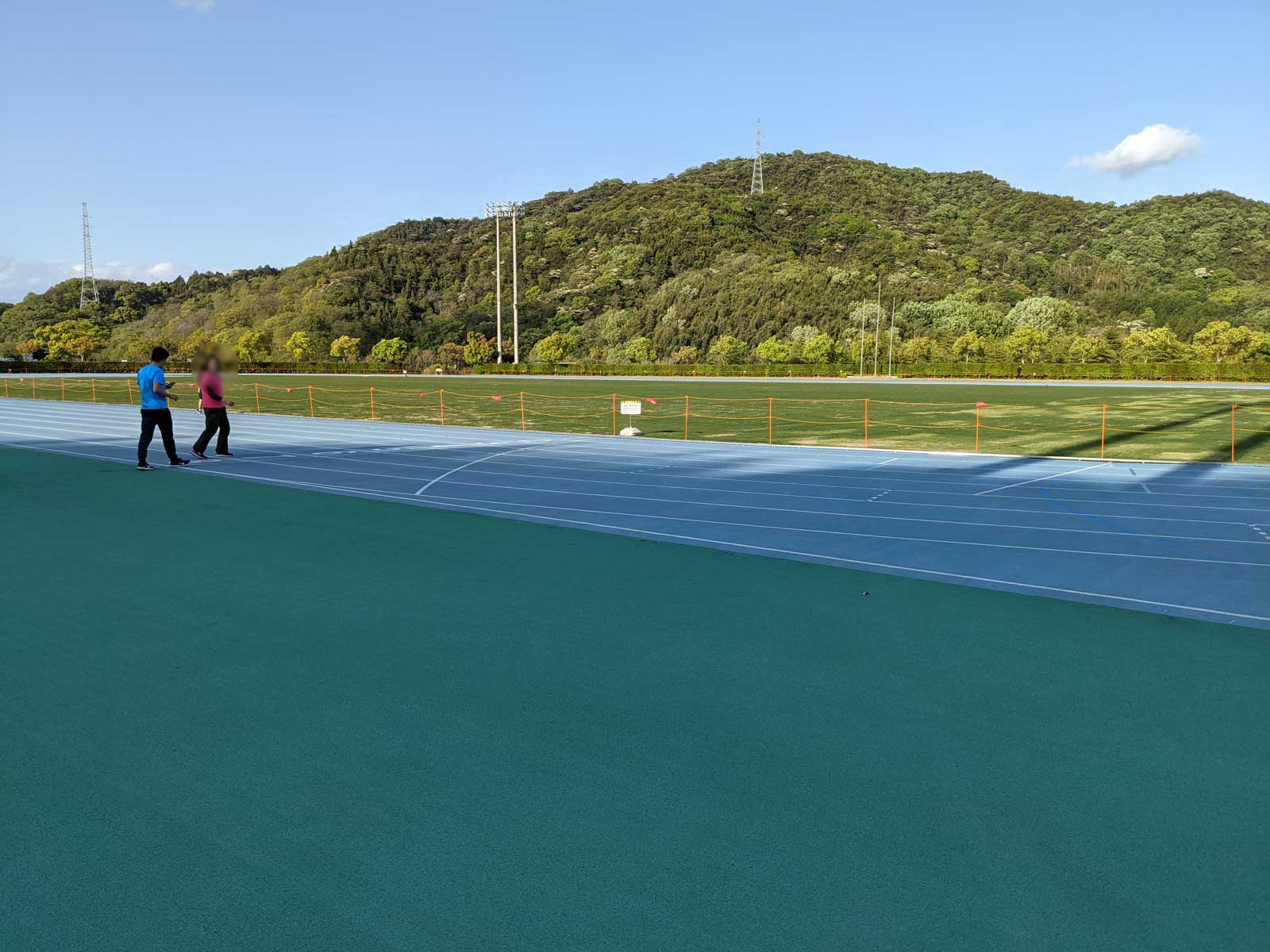 綾川競技場の改修工事が終わってから来るのは始めて。 芝生も綺麗になり、地面の緑色も鮮やかになって綺麗だった。