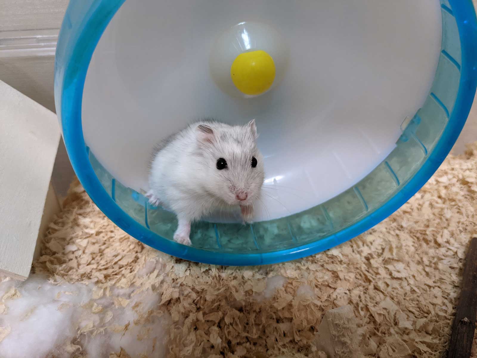 帰りは西村ジョイへ。 土曜日から行方不明のハムスターだが、もう出てこなさそうなので、新しいのを買うことに。 家にまだ3匹いるのだが。 同じゴールデンハムスターを買うより、違う種類にしようと思って、ジャンガリアンハムスターを購入した。 ゴールデンと比べると、身体はかなり小さくすばしっこい。 まだ慣れてないのか、ケージに入れて数時間経っても、かなり警戒している感じだった。