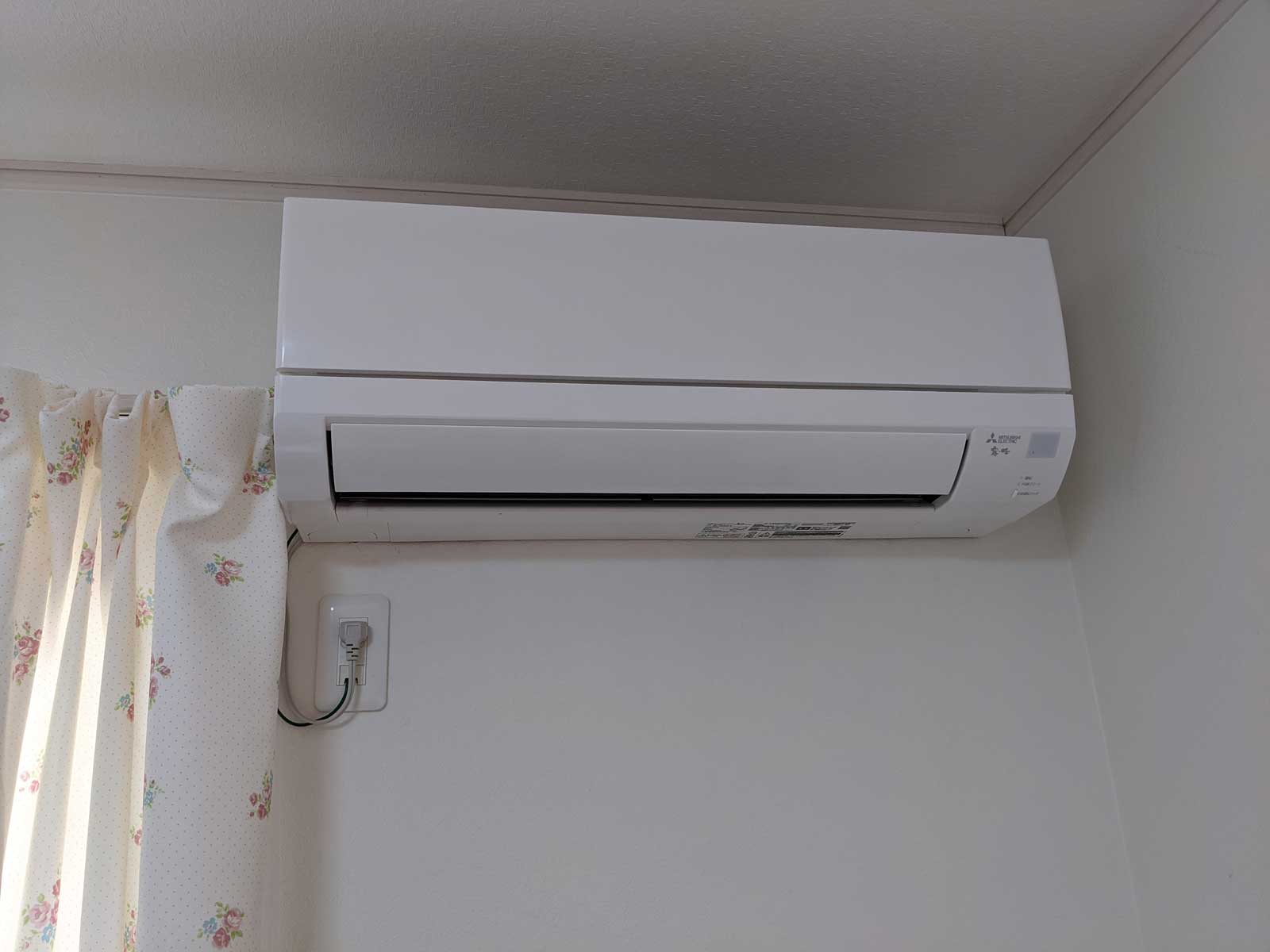 部屋の広さが6畳なのか8畳なのかわからないが、多分6畳ではないと思うので、8畳用のを見る。 三菱、日立は54,450円、アイリスオーヤマは46,800円だったかな。 特にこだわりはないが、三菱の8畳用の「霧ヶ峰 MSZ-GV2520-W」にすることにした。