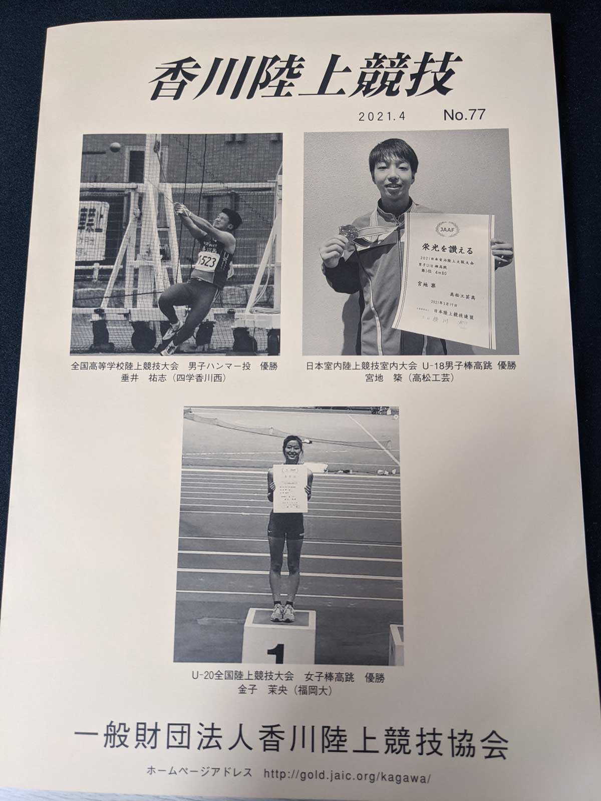 三女の練習とかではなく、受付で販売されている「香川陸上競技」という冊子のNo.77、2021.4版を購入したかったので。 1冊1000円で中身は昨年実施された大会毎のTOP8や、今年度開催される大会の要項、一般・高校・中学・小学に分類された香川県記録などだ。