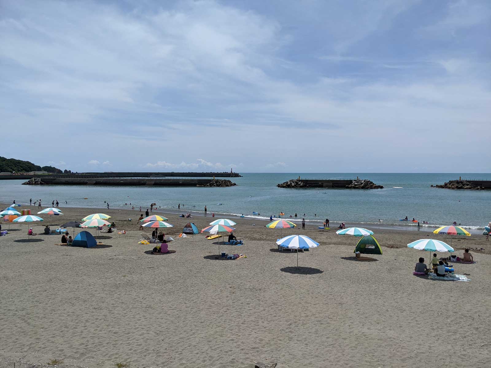 途中で眠くなってゴザで寝たりしていたけど、たっぷりと夏の海を楽しんだ。 入った瞬間は水は冷たかったけど、慣れれば問題ないくらいの水温だった。 日差しは強烈なので、海から出るとすぐに暑くなる。