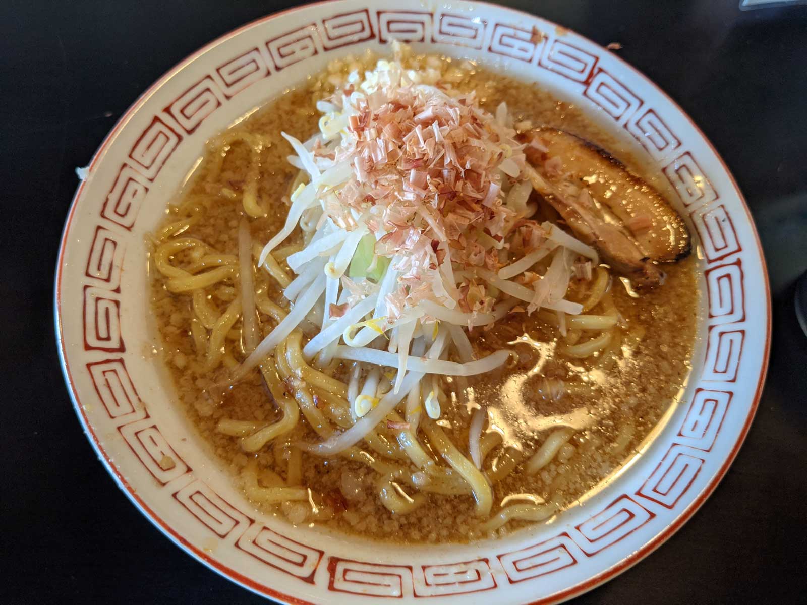 「マルトクラーメン」という、二郎系インスパイアの店らしい。 二郎系のラーメン食べたことないけど、マシマシとかは止めておこう。 お腹すいてるけど、普通のサイズにしておいた。 横の人がすごい大盛りの野菜のラーメン食べていたけど、あんなのが出てきたらとても食べられる気はしない。