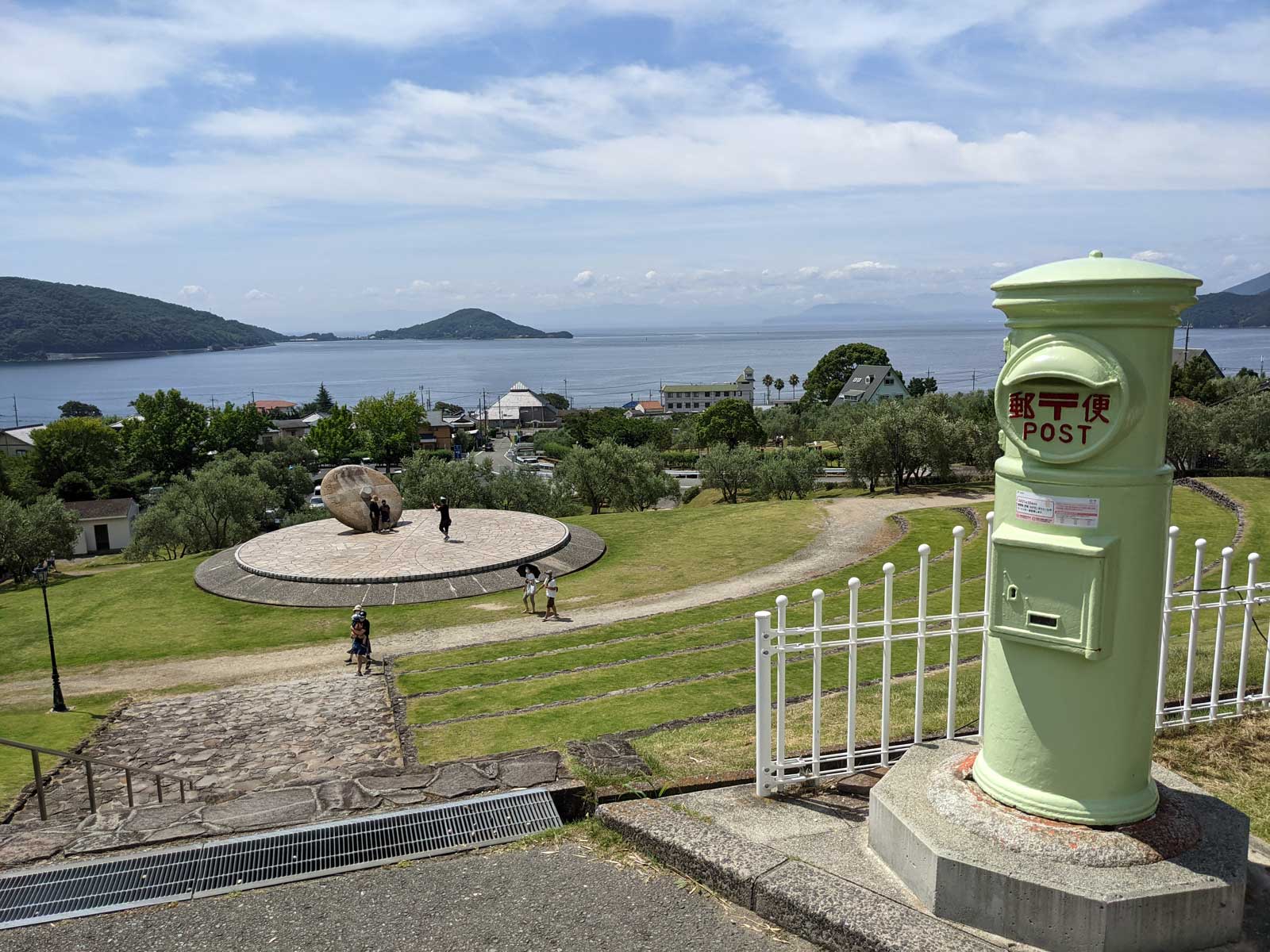 小豆島では坂手港から土庄港まで、いろいろ寄り道しながら19kmの道のりを自転車で走っていく。 自転車で19kmってかなり短いが、一番年齢が低いのが3年生で3人いる、普通のママチャリの保護者もいる。 そして何よりこの暑さが強敵だ。 今日は真夏の日差しで最高気温は30度を超える。 熱中症にならないように気をつけなくてはならない。