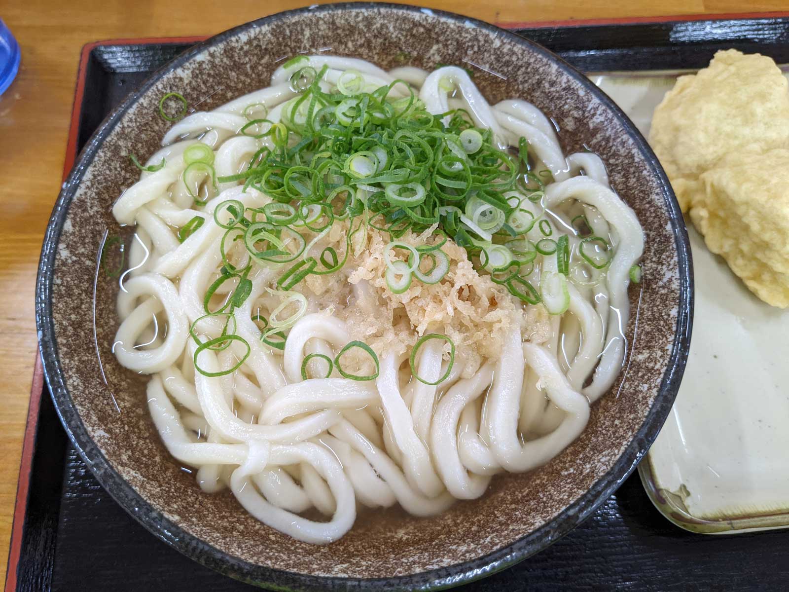 今日は13時半から綾川で陸上。 12時位に家を出て「こがね製麺所」でお昼ごはん。 かけうどんとじゃがいもの天ぷらを食べた。