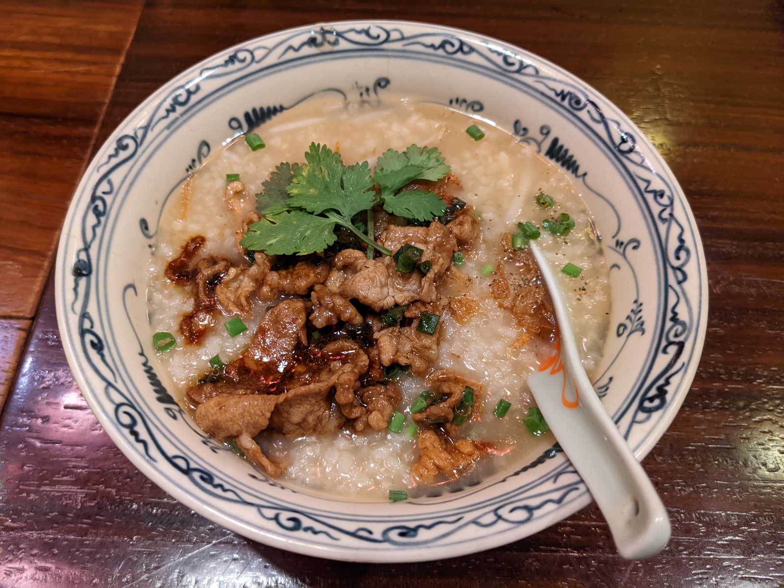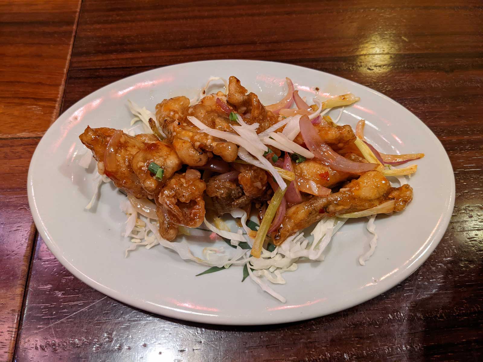 ベトナム角煮、オクラの炒め物、カエルの足のスイートチリソース炒め、チャオヘオ(ベトナムお粥豚肉)と、バーバーバービールを注文。 店員に「1人で4品は多い」と指摘されたが「頑張って食べる」と伝えた。